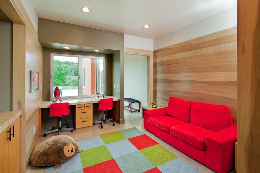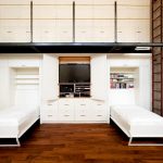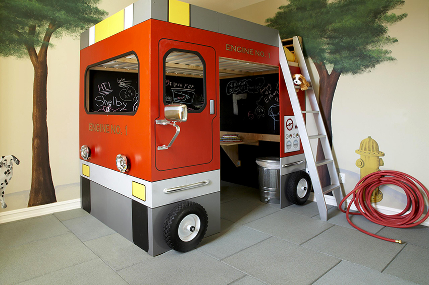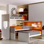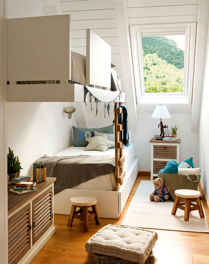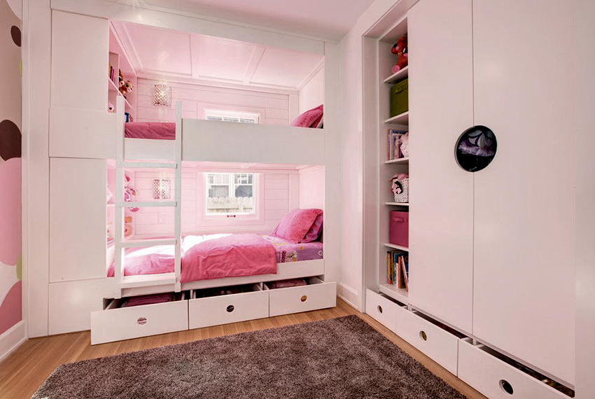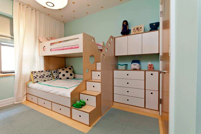 Prostor pod postelí je uspořádán jinak. Pro každé dítě mohou existovat samostatné prostory, s přihlédnutím k jeho věku, nebo je prostor rozdělen na společné pracoviště, prostor pro hry a úložný systém, který je jasně znázorněn na fotografii dětského koutku s postelemi.