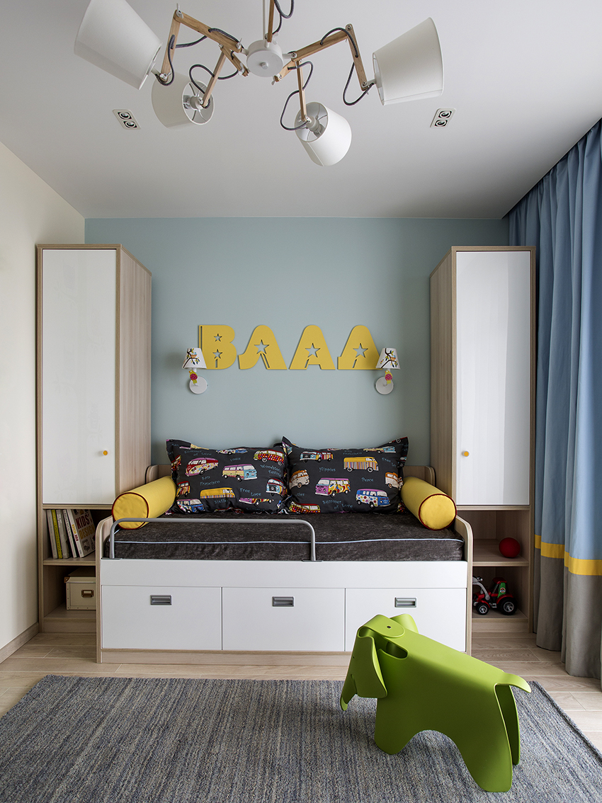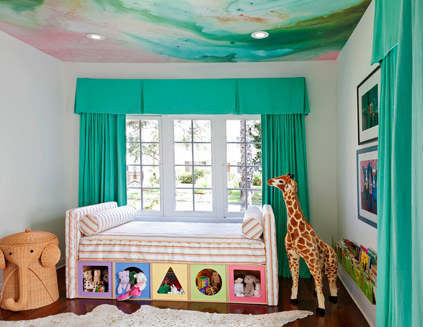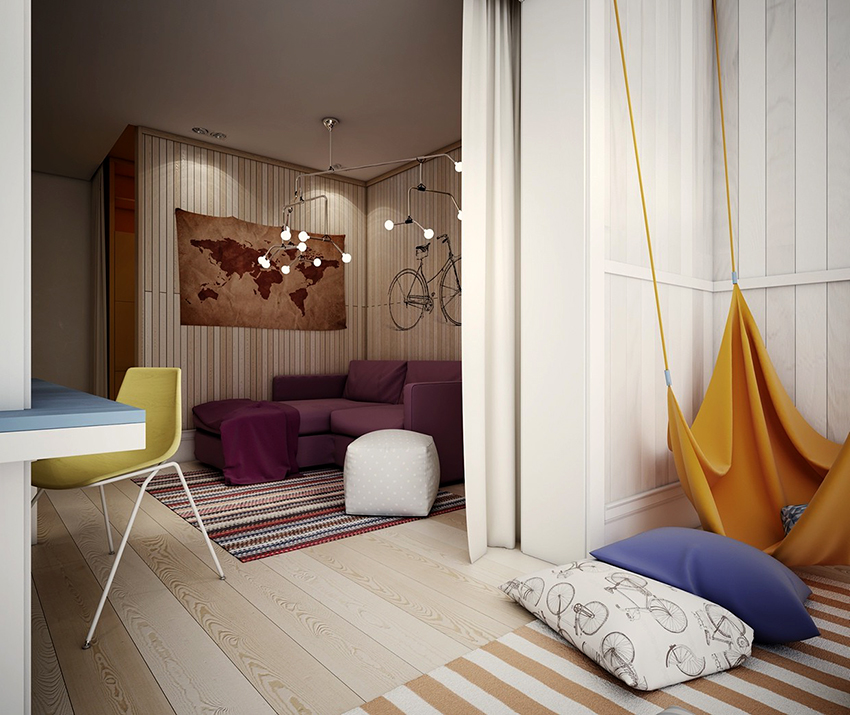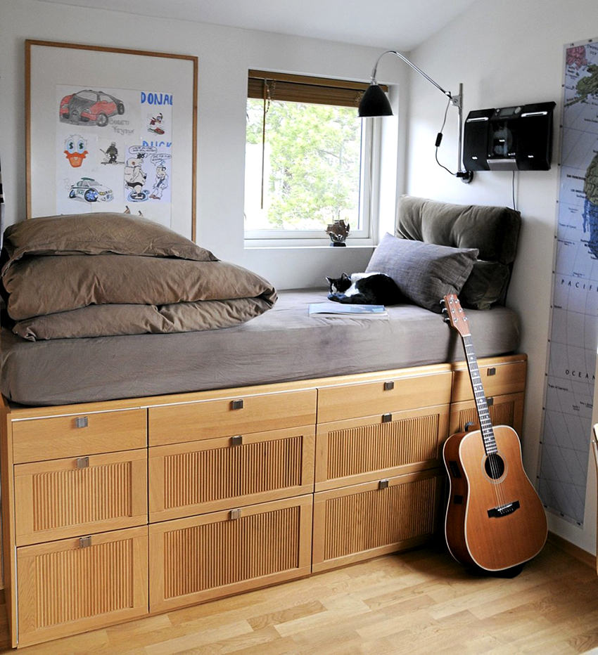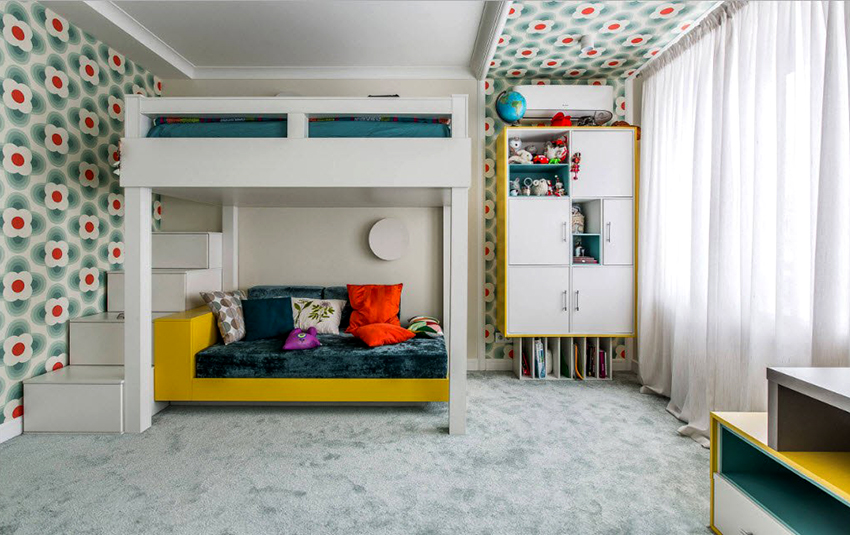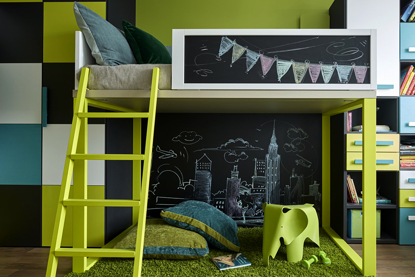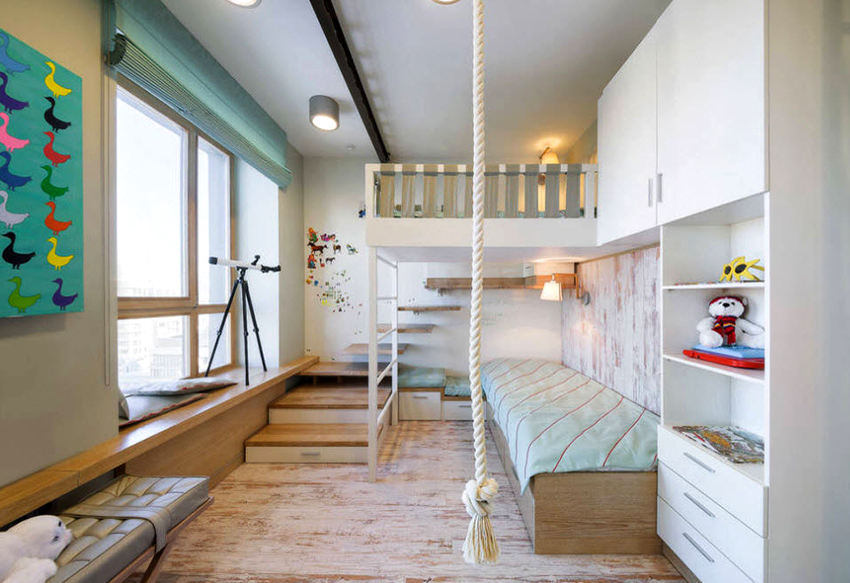 Oblast pod postelí může zůstat otevřená. Doporučuje se vybavit tam sportovní koutek, který podporuje fyzický vývoj dítěte.