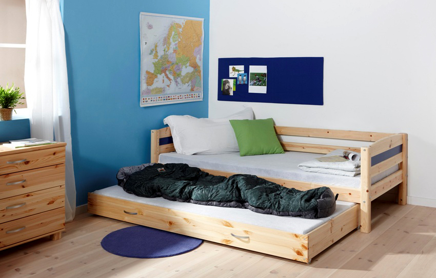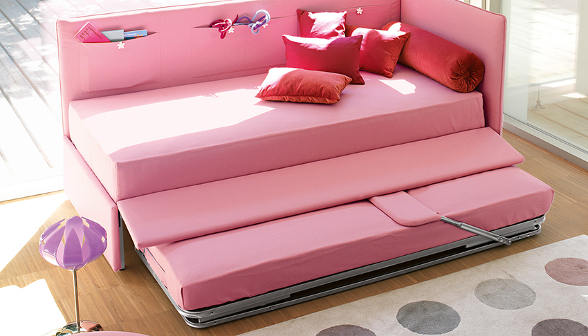 Rozkládací pohovka osloví teenagera. Modely mají standardní délku 190 cm a rozloženou šířku 70–160 cm. Nejjednodušší je jednolůžkový model. Je vybaven třemi zády.Postačí položit polštář na boční zábradlí a pohovka se okamžitě promění v postel.