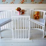 Podobný design je rychle smontován a rozebrán. Lze jej snadno přepravovat. Zařízení ohrádky umožňuje opustit dítě bez obav o jeho bezpečnost. Tyto typy vzorů lze vidět na fotografii novorozených betlémů.