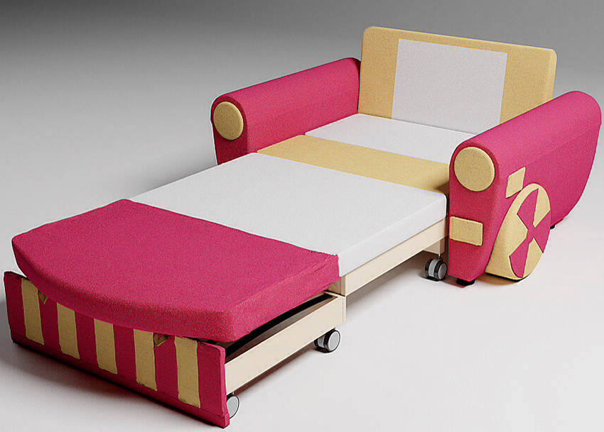 V designu delfínů je oblast na spaní skrytá pod sedadlem. Chcete-li rozložit židli, musíte se snažit, takže takový produkt bude vhodný pro dospívající dítě. U výsuvného modelu je lůžko příliš nízké. Židle má odnímatelnou tenkou ortopedickou matraci, což je pro každodenní použití nepohodlné.