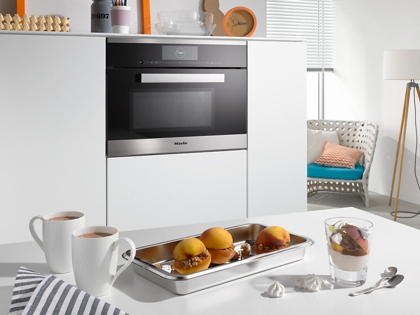 En ovn med en mikrobølgefunktion kombinerer to ret store enheder, så den vælges for at spare plads på køkkenet