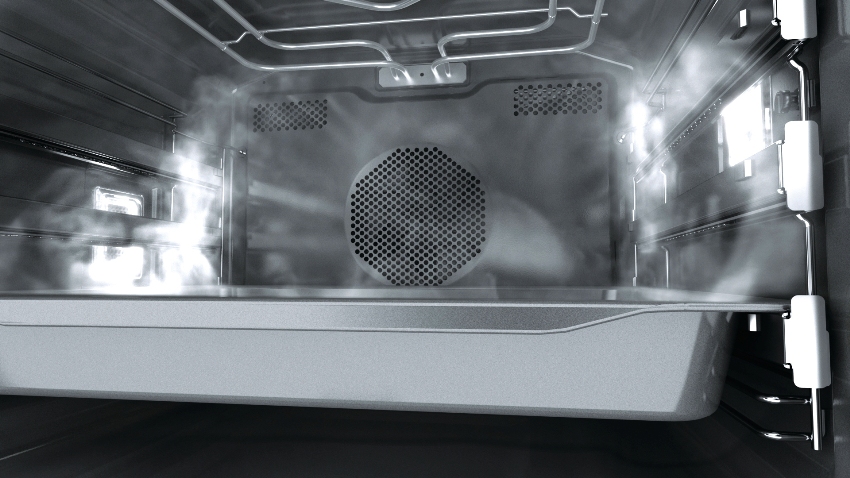 Når du arbejder med ovne med en dampfunktion, skal du bare hælde vand i en speciel beholder, der er skjult i apparatets væg eller på frontpanelet