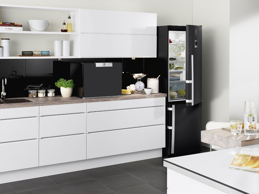 Den lille højde af den kompakte opvaskemaskine giver dig mulighed for at placere maskinen både under vasken og under overskabene på bordpladen