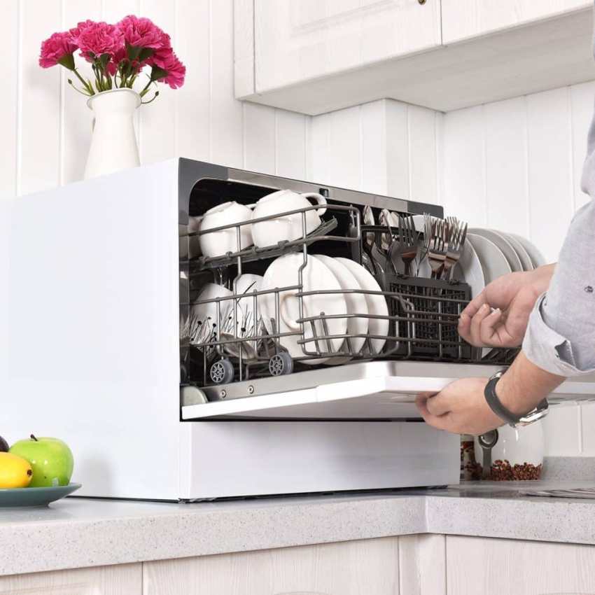 Kompakt PMM: fordele og ulemper ved mini opvaskemaskine
