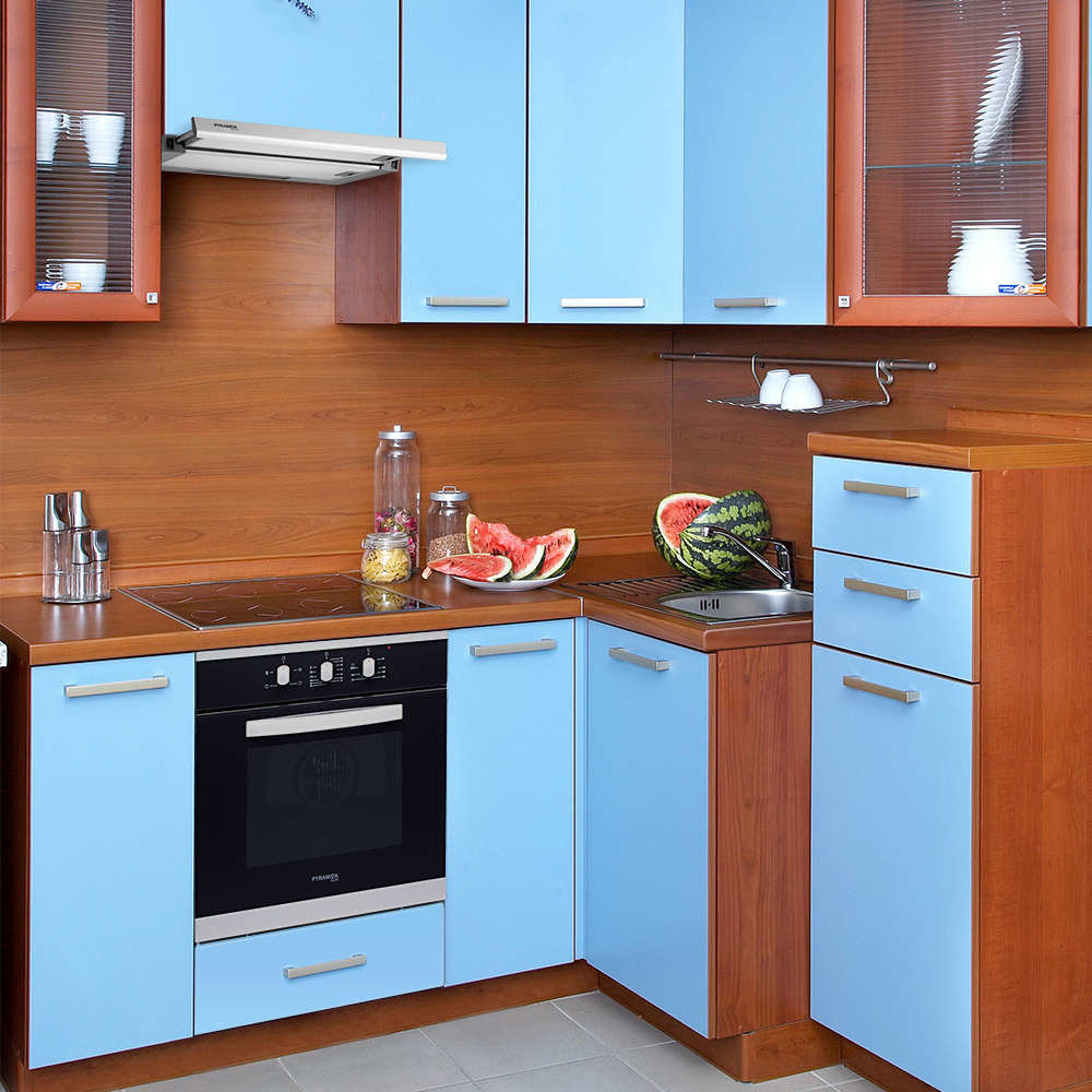Hætte. Et sæt indbyggede køkkenapparater inkluderer som regel denne enhed. I dag er der to typer integrerede emhætter, der adskiller sig i deres funktionsprincip: udstyret med afløb og filtrering. I det første tilfælde opsamler enheden forurenet luft og hjælper med at fjerne den gennem ventilationsrøret.