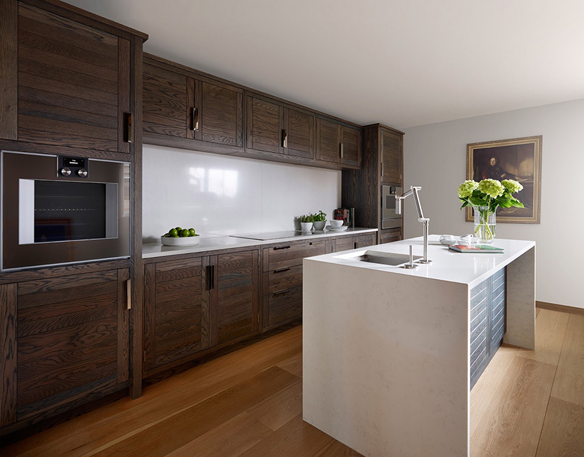Installation af en køkkenenhed med indbyggede apparater kan også reducere forbruget af elektrisk energi. Møbler til individuelle funktionelle elementer vælges normalt individuelt. Arrangementet af enheder inde i skabene giver lydisolering, hvilket er en vigtig fordel.