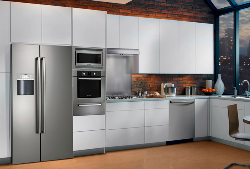 Langt den bedste mulighed er at købe et køkken med indbyggede apparater sammen. Dette giver dig mulighed for at få en harmonisk væg udstyret med alle de nødvendige store apparater og små apparater.