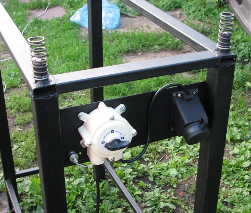 Du skal også bruge en plade til installation af elektrisk udstyr og en fjeder, der er designet til at give vibrationer. Det er meget muligt at købe disse elementer ved autodemontering. Talrige anmeldelser indikerer, at den ideelle mulighed er at bruge fjedre fra knallerter, hvis omkostninger i en højde på 113 mm og en diameter på 54 mm vil være omkring 500 rubler. De er installeret i hjørnerne af bordet, og med et stort overfladeareal er der yderligere monteret en i midten.
