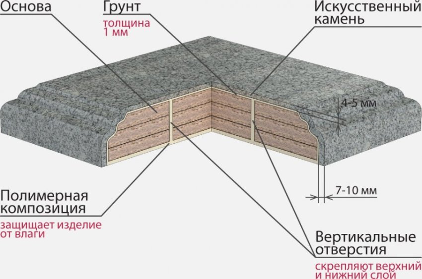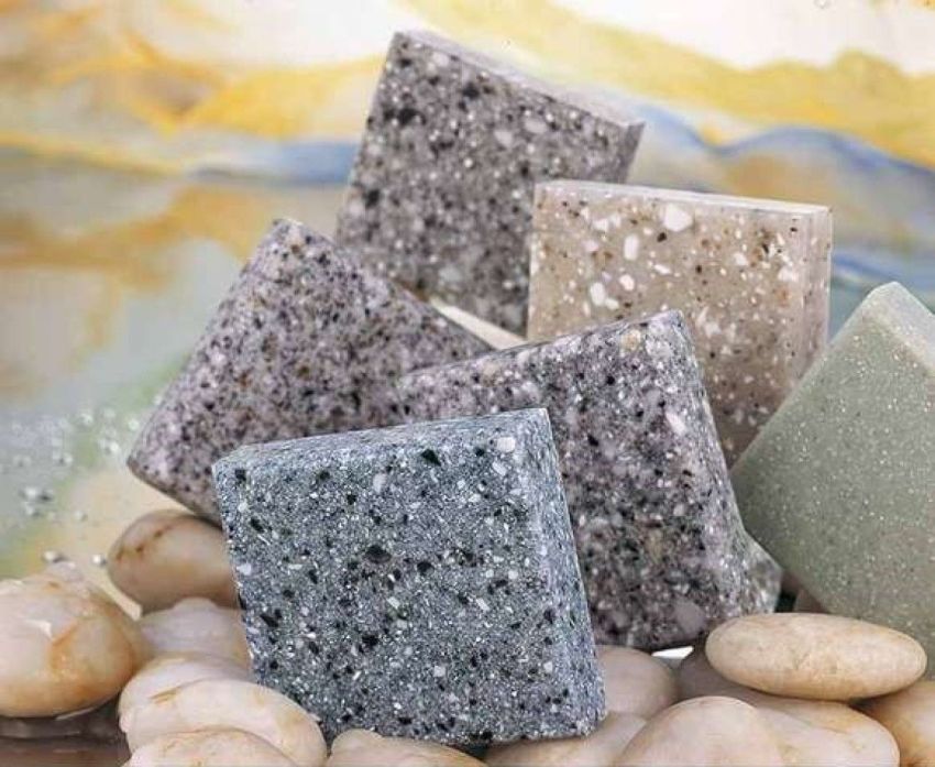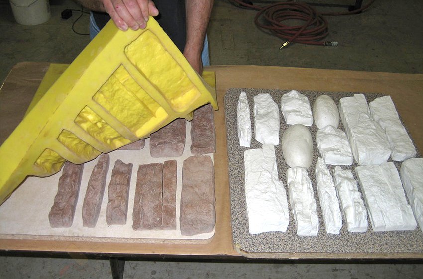 Til fremstilling af betonbehandlingsprodukter anvendes polyurethan- eller plastformer oftest. Overvej hvad denne type kunstig sten er lavet af: