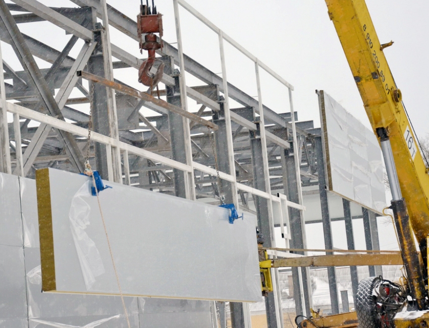 Den største fordel ved sådanne plader er, at sandwichpanelstrukturer kan bygges selv under vanskelige klimatiske forhold. Indenlandske virksomheder styres af de teknologier, der anvendes i USA og Canada, inden for produktion af sådanne byggematerialer.