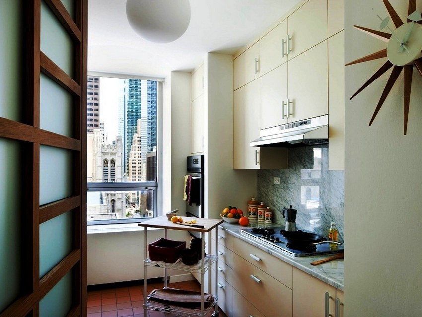 Effektiv optimering af opbevaringen af køkkenredskaber er en af hovedreglerne for at spare plads i et lille køkken