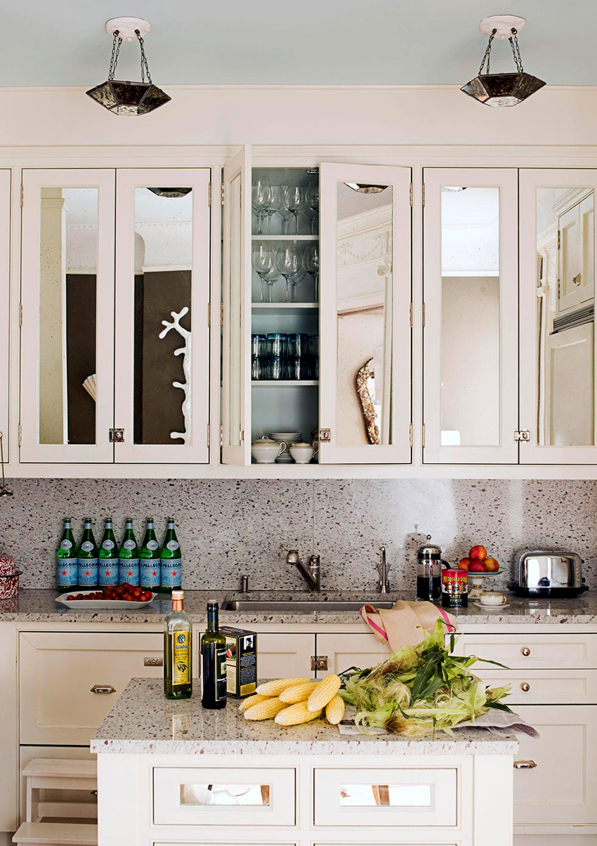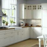 Hvid farve og dens nuancer har altid været populære og er stadig relevante i designet af køkkener i alle størrelser. Den hvide køkkenenhed er kendetegnet ved dens evne til at reflektere lys, hvilket skaber effekterne af lethed og rummelighed. Hvis du tilføjer spejle overflader til hvide facader, kan du visuelt øge rummet endnu mere.