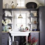 Også på billedet af køkkenhovedtelefoner kan du finde muligheder for at bruge skinner, som er et metalrør, hvorpå kroge og hængslede hylder er placeret. Skinnerne bruges til at hænge nyttigt tilbehør som grydelapper, scoops, krydderikrukker, håndklæder, kopper og meget mere. Dette tilbehør giver dig mulighed for æstetisk at efterlade nyttige ting i syne og frigøre plads på arbejdsfladen.