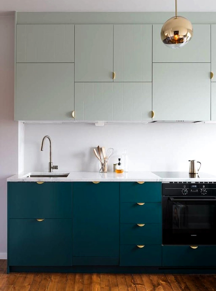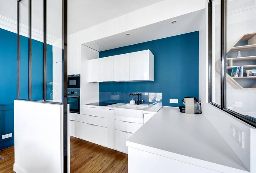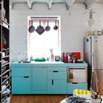 Farveskema af design af køkkensæt til små køkkener: fotoeksempler