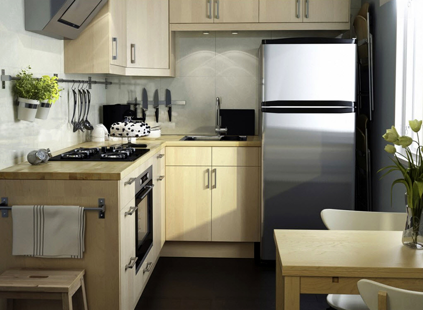 Når du arrangerer et lille køkken, skal du ikke kun stole på rummets størrelse, men også på køkkenets sæt