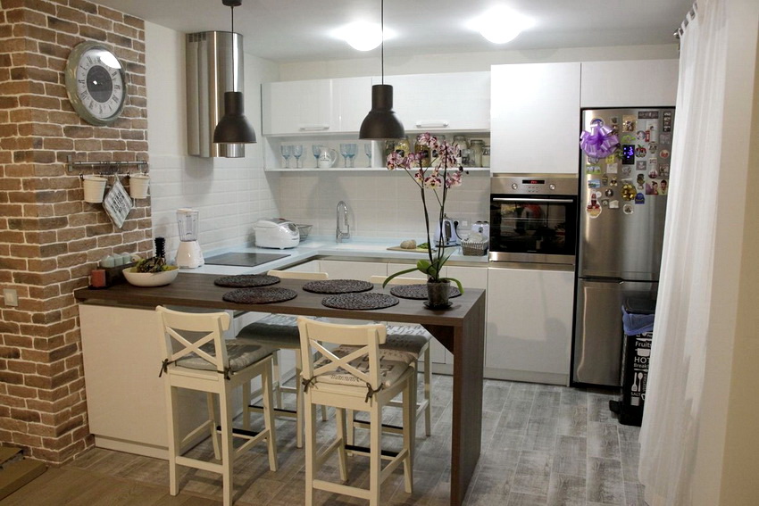 Hvis køkkenet ikke har plads nok til et spisebord - bardisk med stole hjælper med at løse dette problem