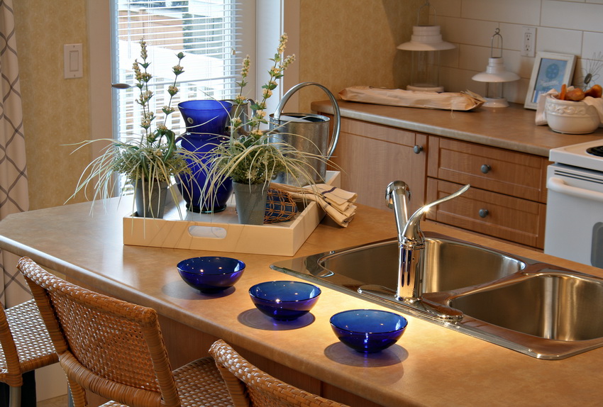 Hjælpsomme råd! Før du køber et køkkenbord til et lille køkken, er det vigtigt at beslutte, hvilken bordplade, der er optimal og passer mest harmonisk ind i det overordnede layout. Det skal bemærkes, at borddæksler af ikke-standardiserede størrelser og former er dyrere end klassiske muligheder.