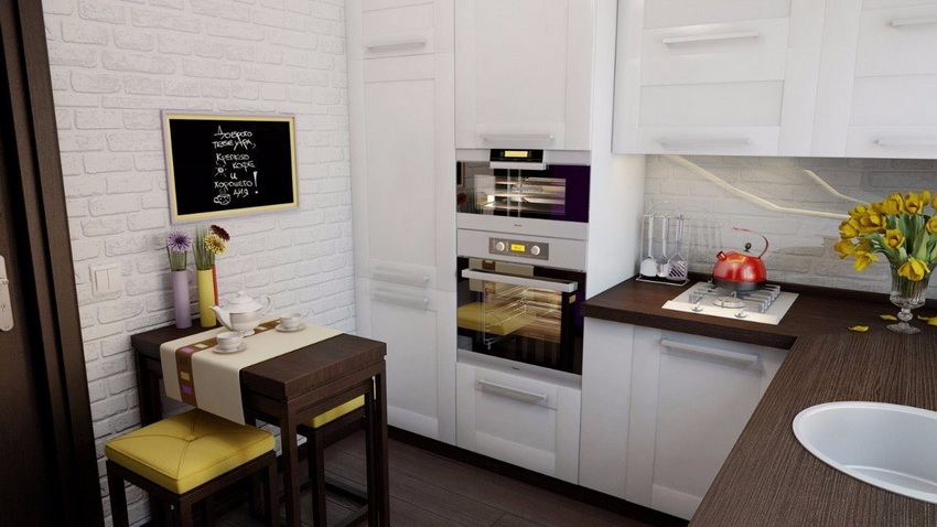Bordets design til små køkkener kan være hvad som helst, men designet skal være behageligt og ikke tage al ledig plads.