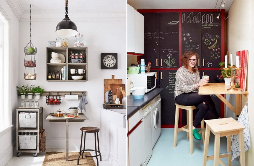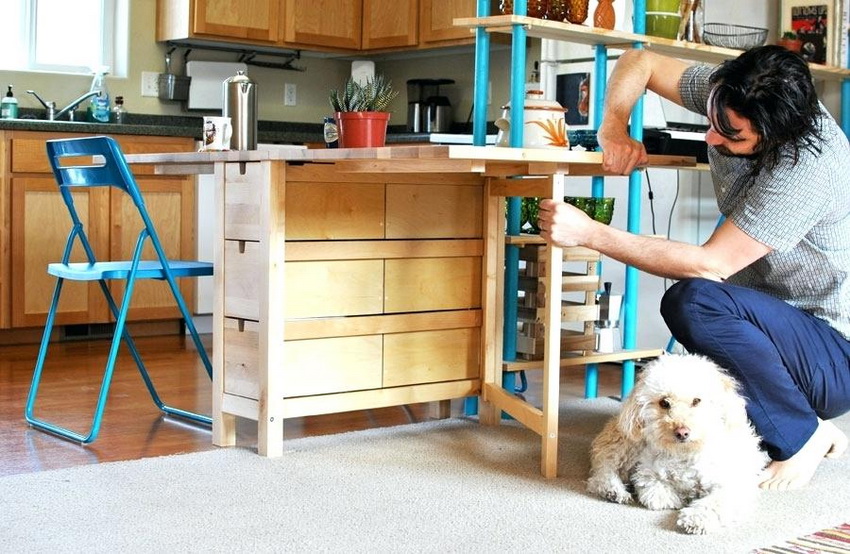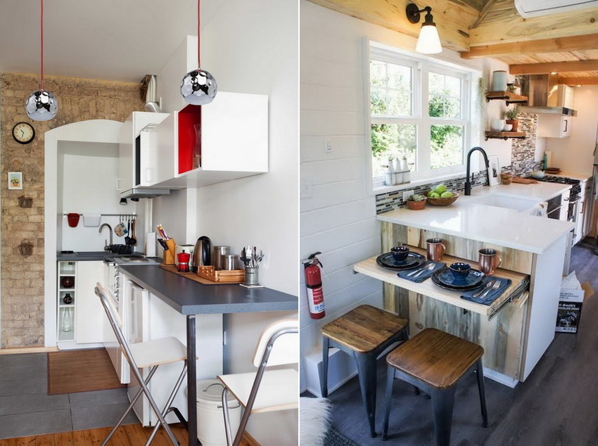 Sammenklappelige køkkenborde til et lille køkken: transformer og glidning