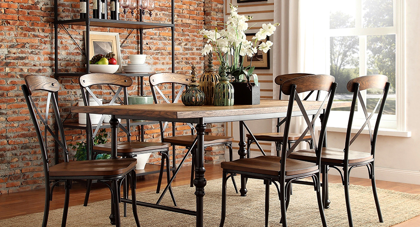 Borde med elegante tynde toppe ser perfekt ud, når de er parret med sofistikerede kromben. Glansen af metaldele i spisesættet supplerer køkkenets samlede sammensætning i harmoni med kromskabshåndtag, fittings og husholdningsapparater.