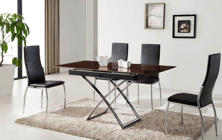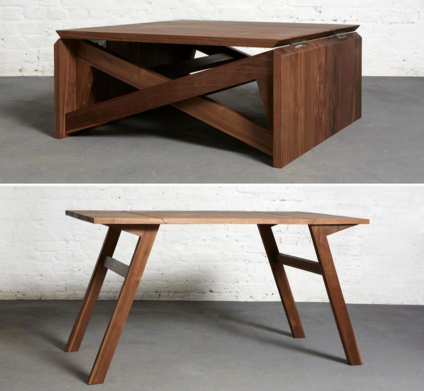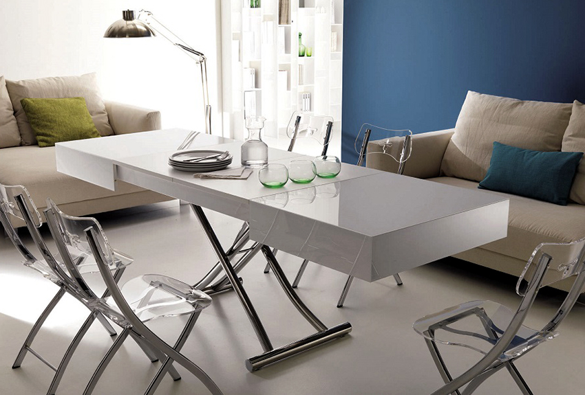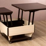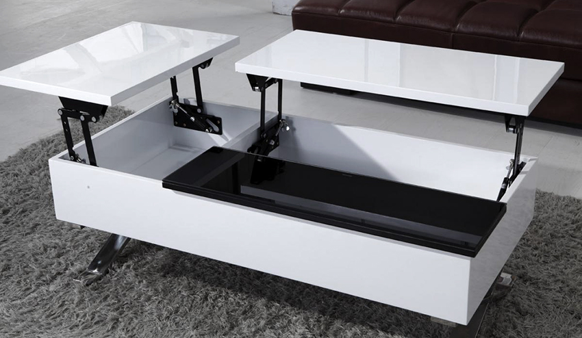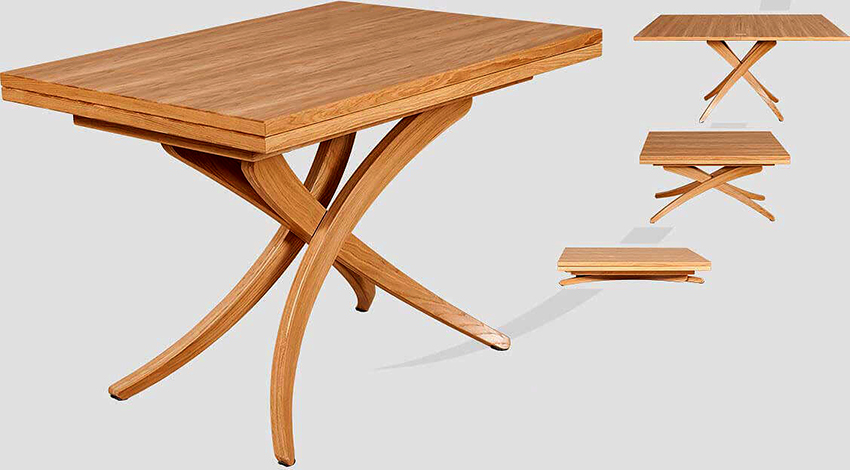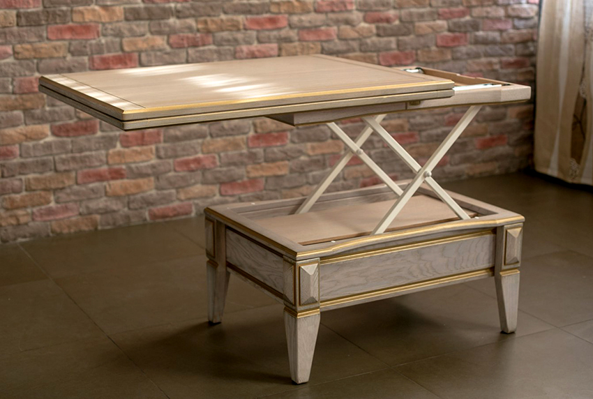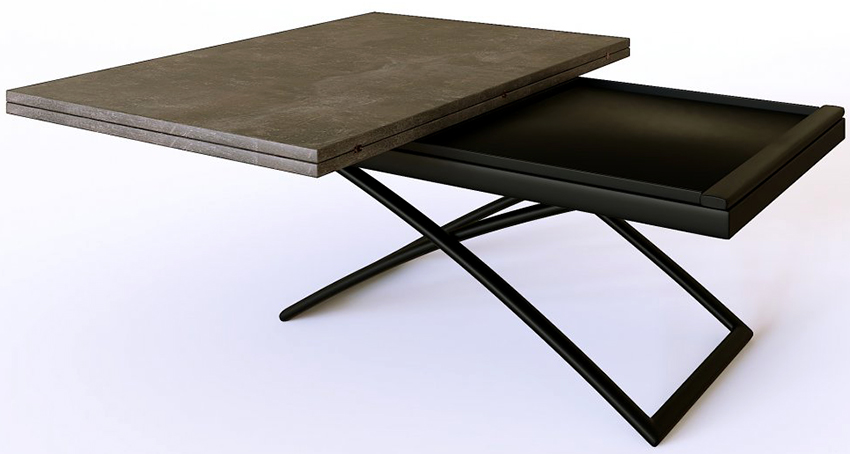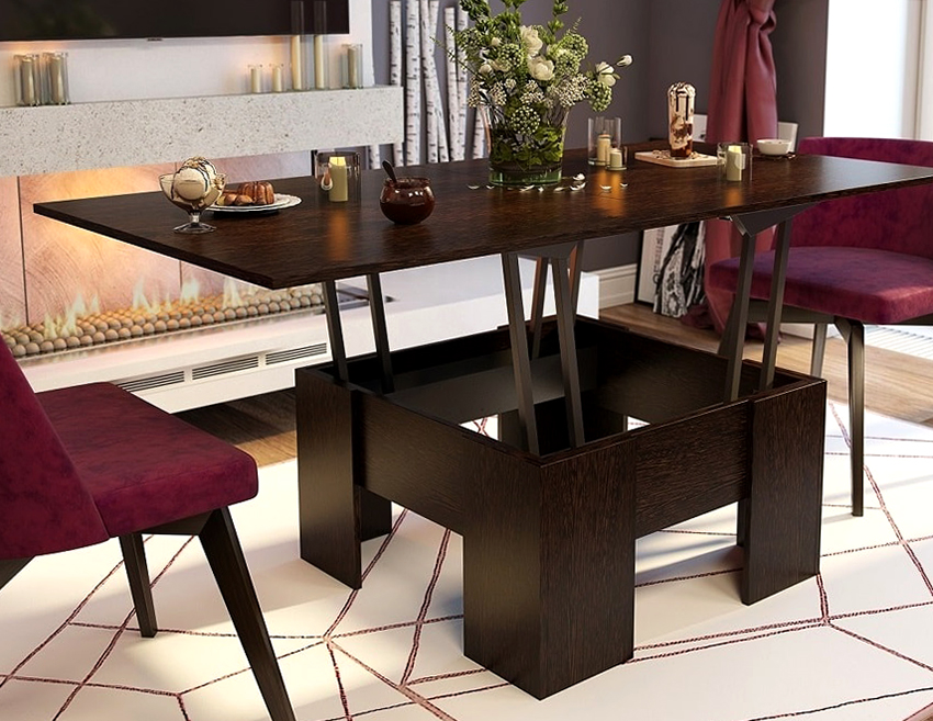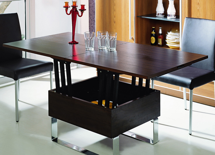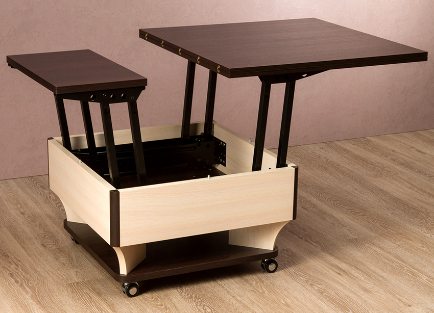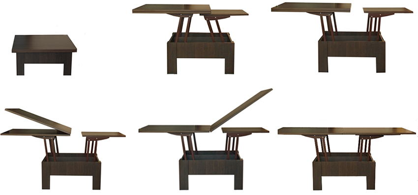 Den mest interessante model blandt de anførte typer af sammenfoldelige strukturer er med rette et kaffebord, der med en let håndbevægelse hurtigt omdannes til et fuldgyldigt møbel. Dette er den nyeste generation af multifunktionelle produkter, der hurtigt blev populære på møbelmarkedet. De vigtigste fordele ved at transformere tabeller: