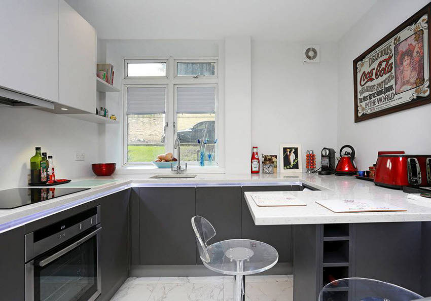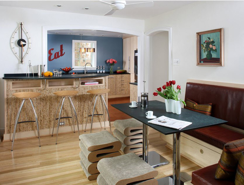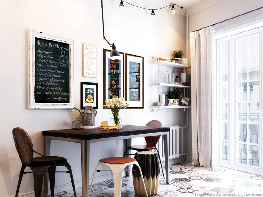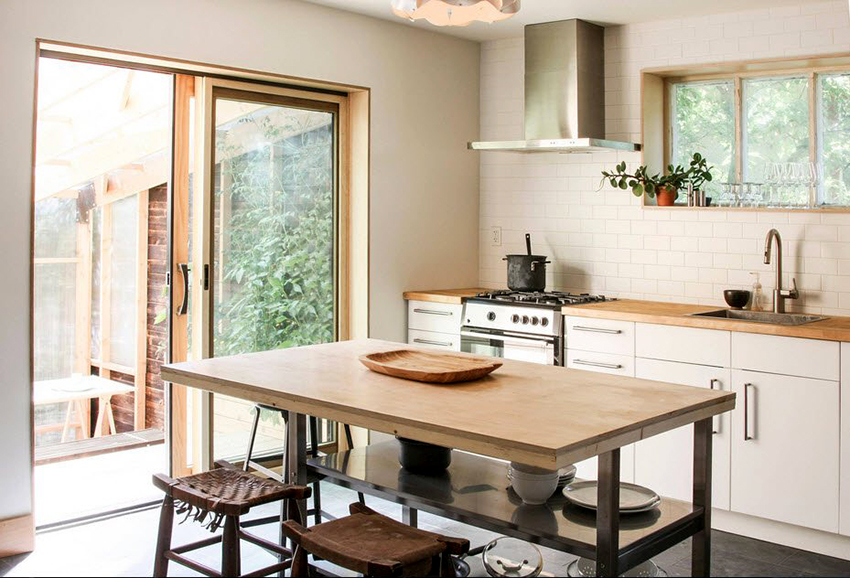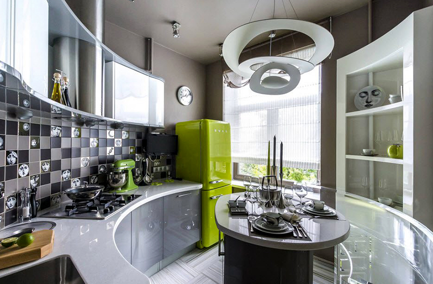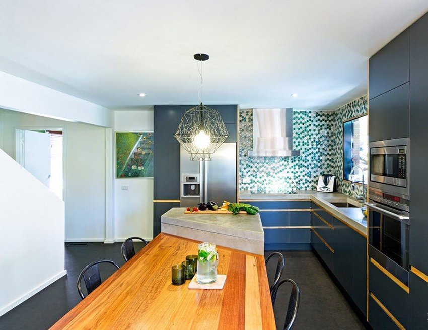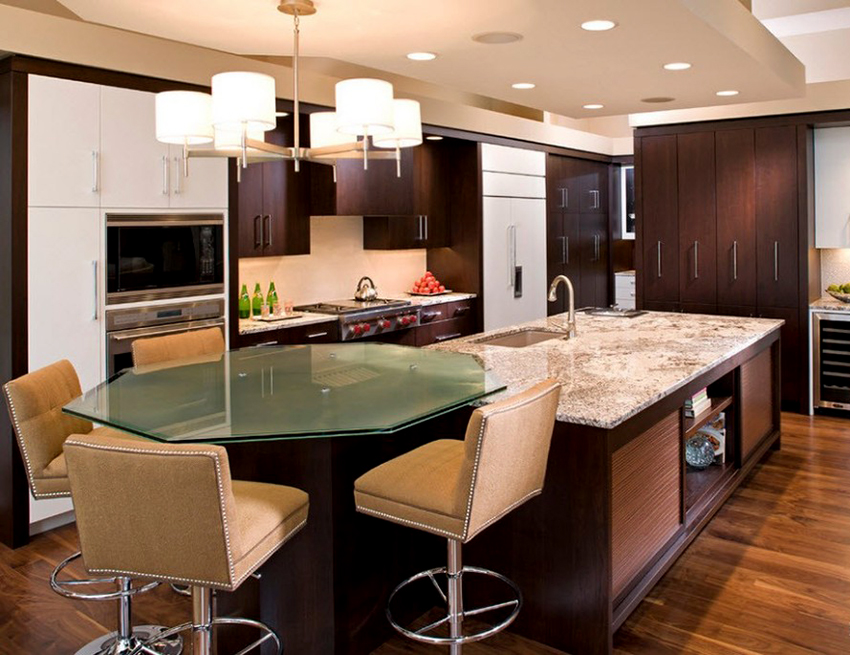 Funktioner af designerborde til køkkenet: fotos af interessante muligheder