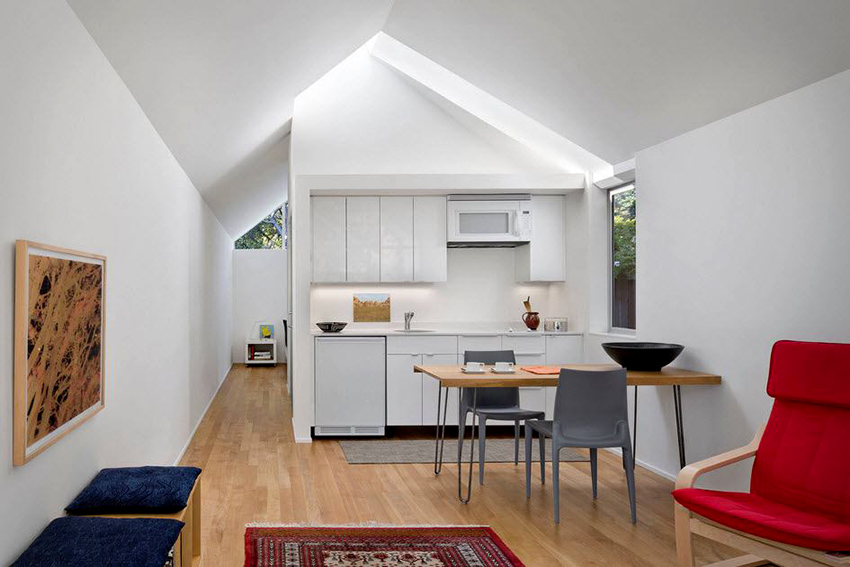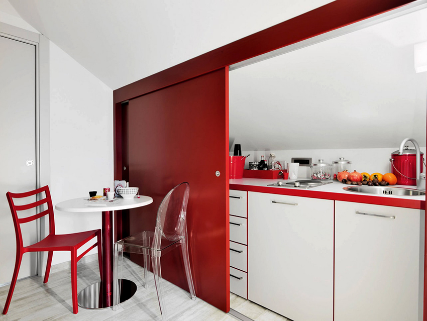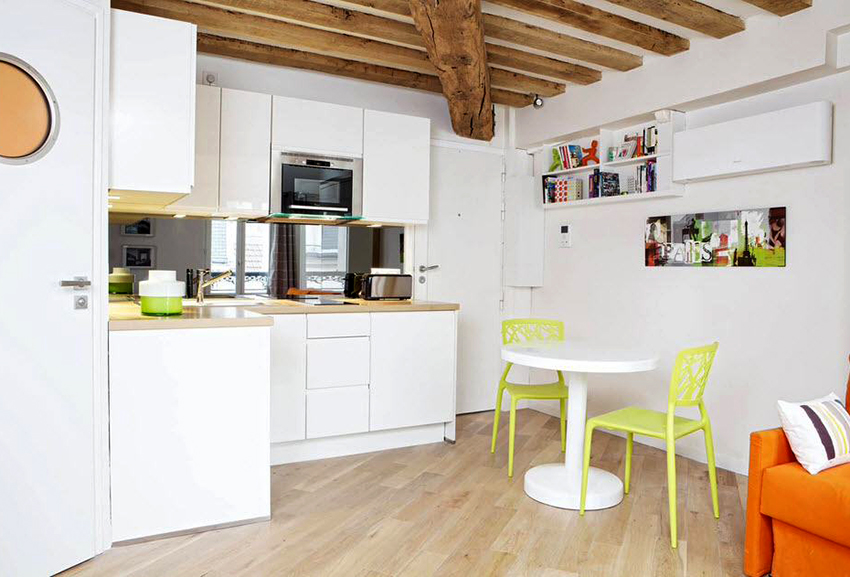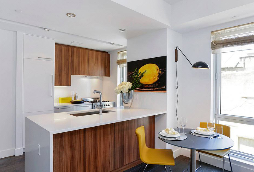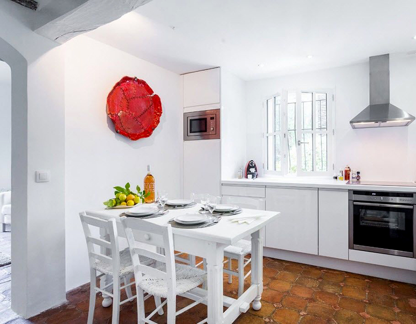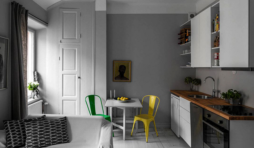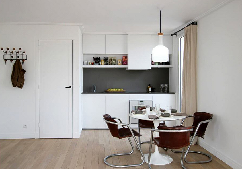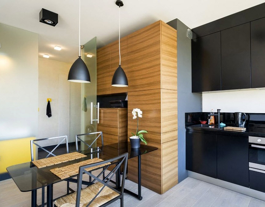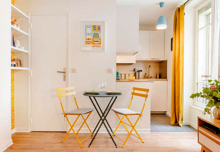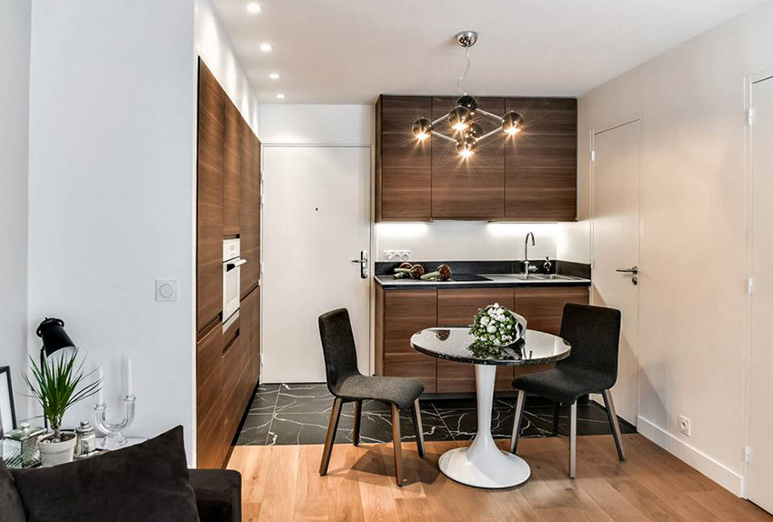 Foldestrukturer har som regel to ulemper - de er tunge og ikke særlig attraktive, når de foldes. Selv små, men stationære borde ser mere æstetisk og naturlige ud i køkkenet. Fotos viser tydeligt dette.