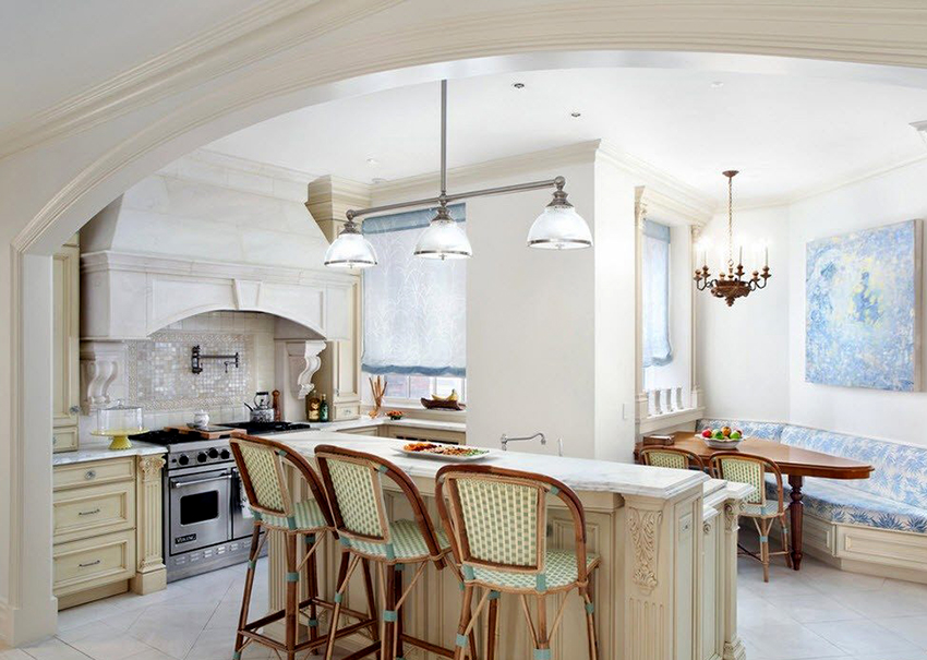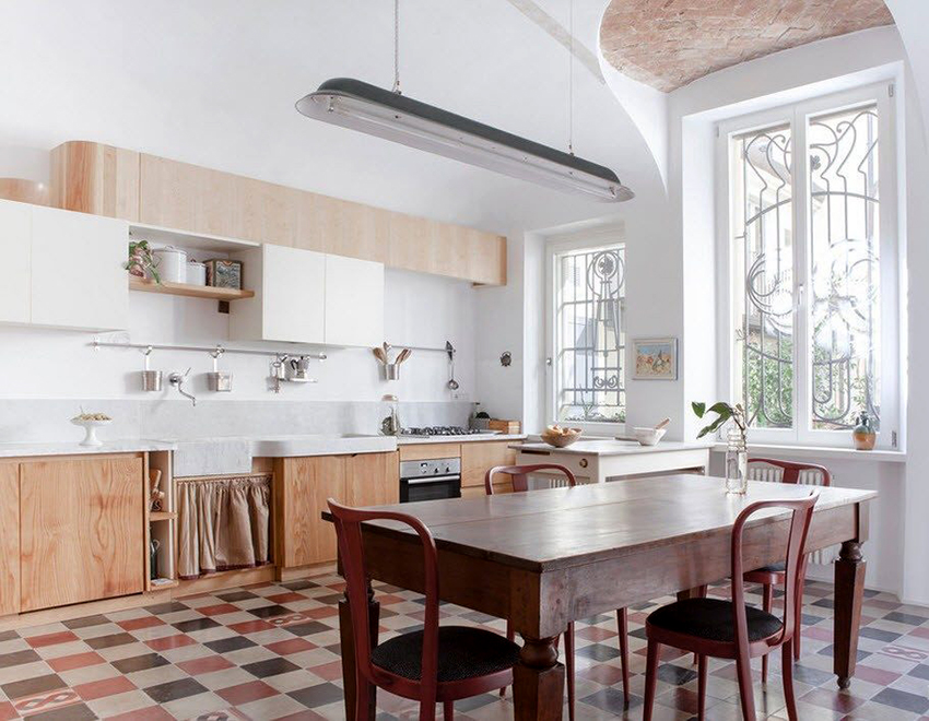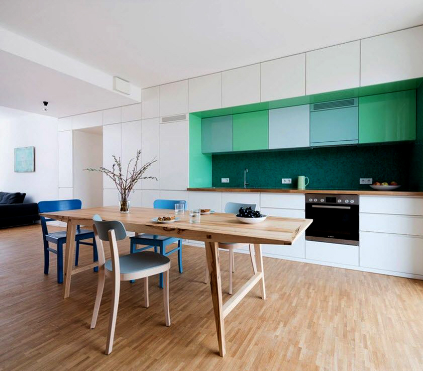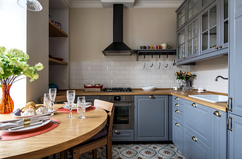 Bordets form og farve i køkkenet: foto indvendigt i forskellige stilarter