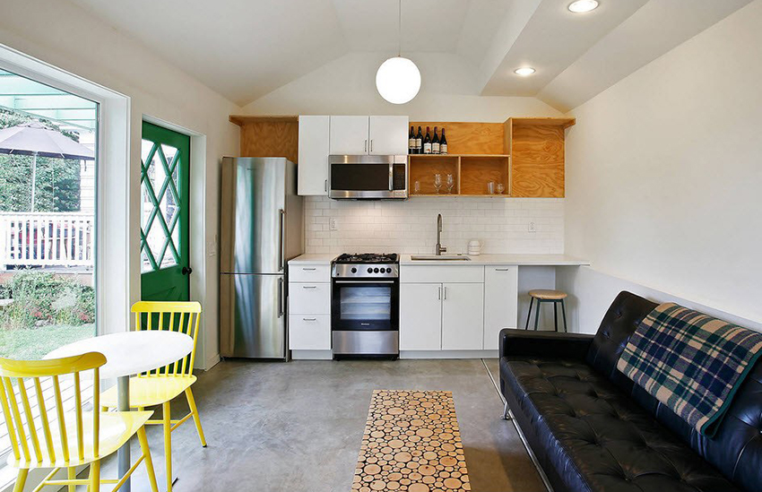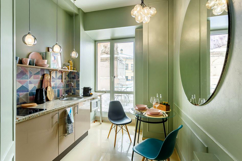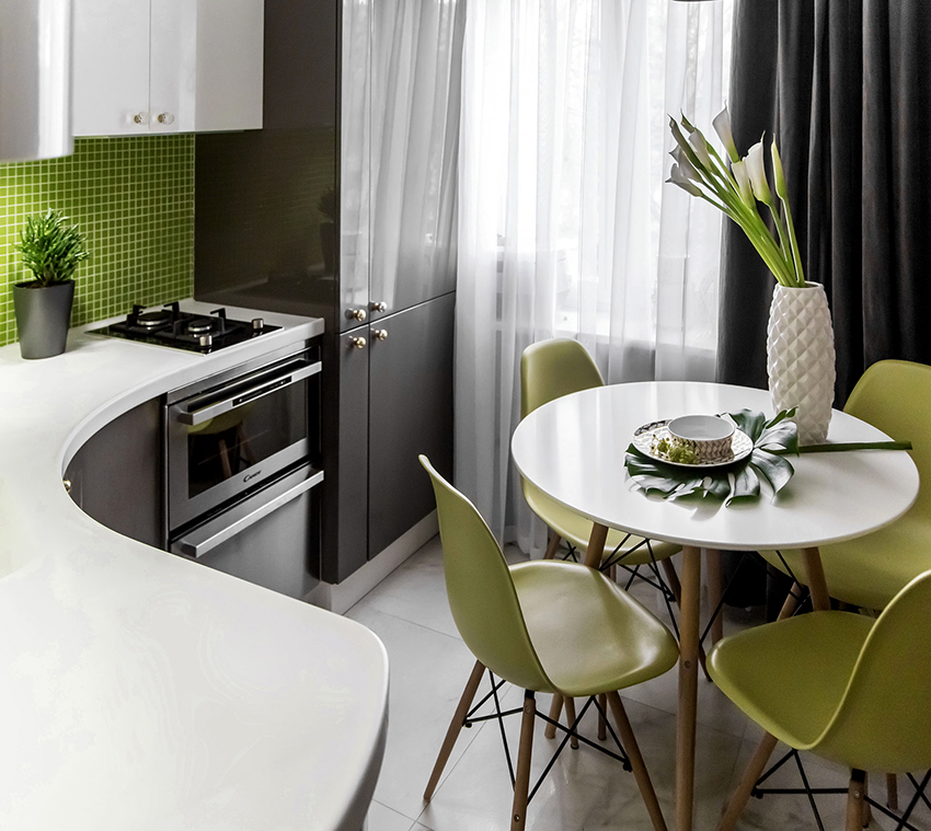 - semi-ovalt er en mulighed for små køkkener, der giver både behagelige siddepladser ved bordet og fraværet af skarpe hjørner.