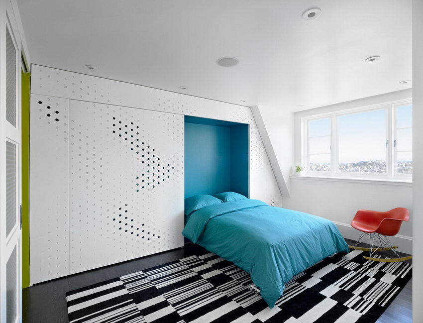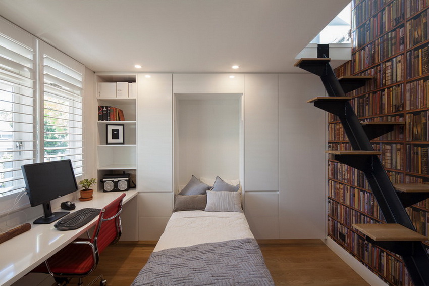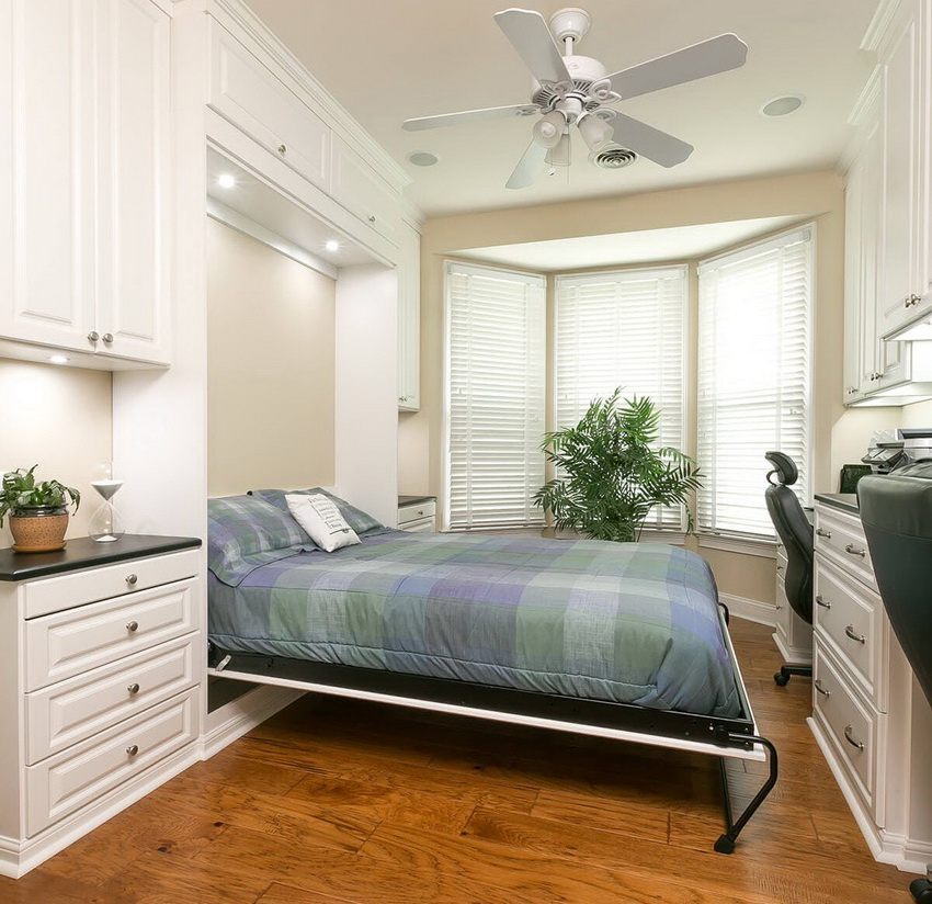 Den vigtigste fordel ved indbyggede strukturer er deres ergonomi.Om nødvendigt kan sengen i væggen foldes ud inden for få sekunder og få et fuldgyldigt sted til hvile og nattesøvn. Resten af tiden kan den opbevares foldet uden at rod i rummet.