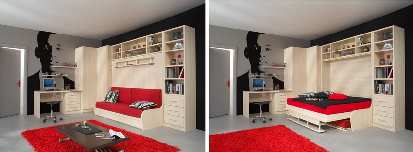 Afhængigt af modellen kan de omdannes til en sofa eller et arbejdsområde med et bord. Denne type mekanisme er mere kompleks og betragtes som dyr. Imidlertid dækker den øgede funktionalitet og anvendelighed denne ulempe.