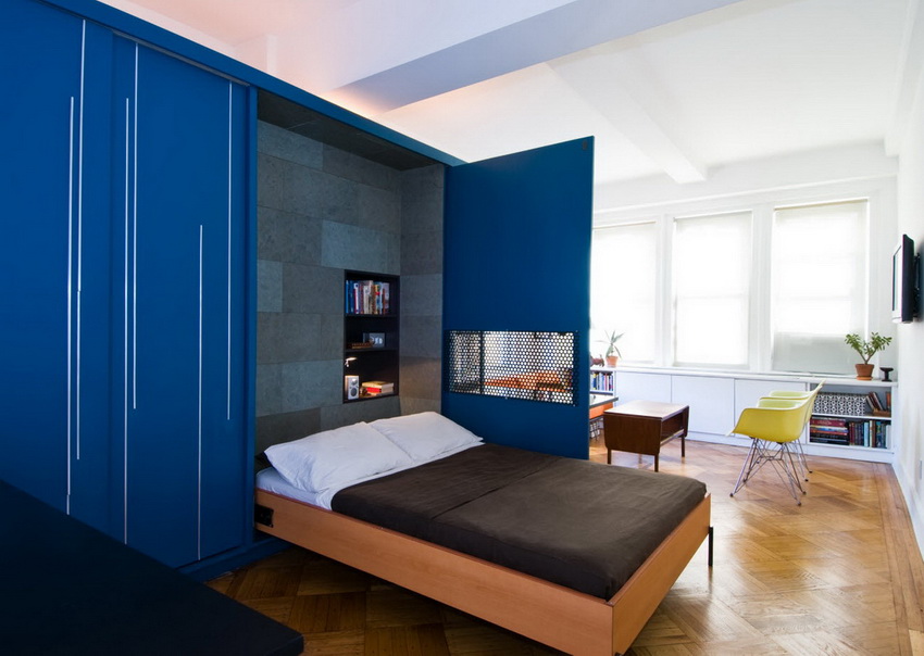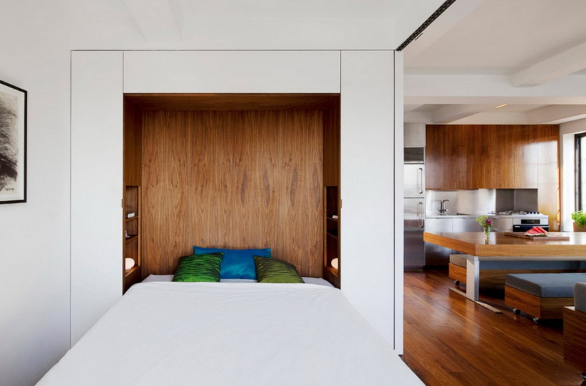 Indbyggede senge kan installeres i boligområder til ethvert formål. De passer perfekt ind i det moderne åbne studiolejlighedsområde. Som regel bruges det kombinerede område om dagen som en stue eller et studie, og om natten bliver det til et soveværelse. Men dette betyder ikke, at sådanne senge ikke er egnede til interiøret i små lejligheder med et konventionelt layout.