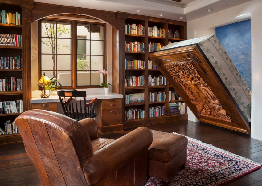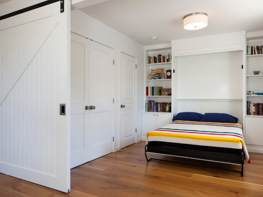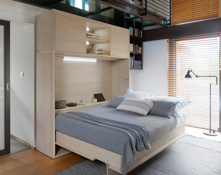 Senge, der trækker sig ind i en væg eller et skab, findes ofte på fotos af moderne interiør. Disse designs er universelle og multifunktionelle, derfor bruger designere og ejere af kompakte bylejligheder dygtigt denne møbelindstilling til at skabe komfort og hygge. Og det er ikke overraskende, fordi transformerende senge giver dig mulighed for at opnå betydelige pladsbesparelser og rationel brug af det frigjorte område.