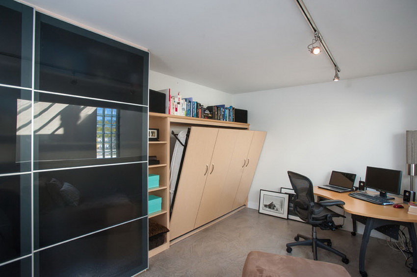 Hjælpsomme råd! Ved hjælp af indbyggede møbler kan du udstyre et tværfagligt kontor, der udlejes til flere håndværkere på samme tid. Dette giver dig mulighed for at maksimere den økonomiske fordel ved et lille rum.