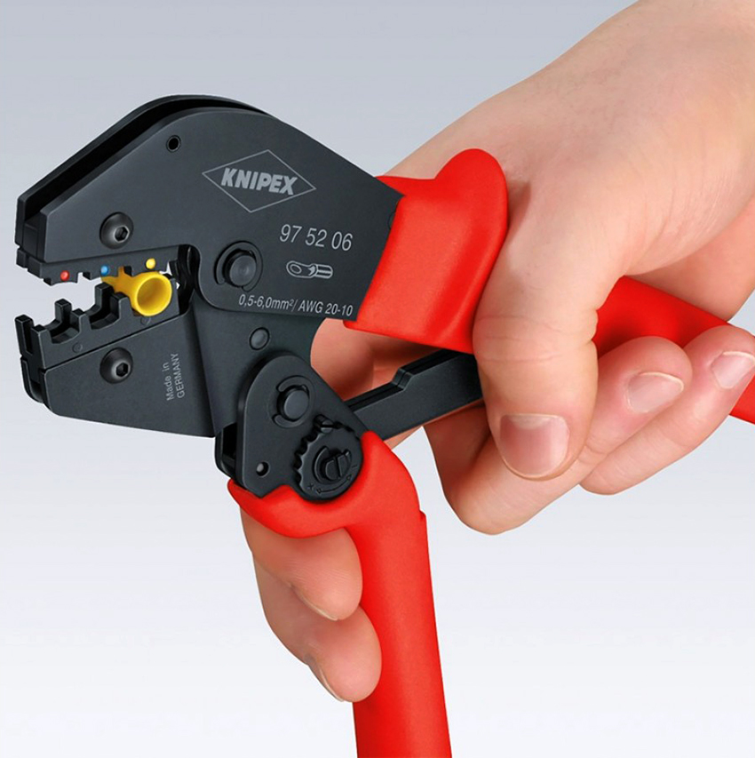 - Zum Crimpen wird vorzugsweise eine Presszange mit einer Matrixgröße von 6 mm² verwendet.