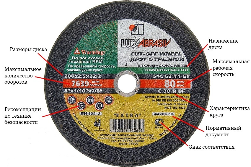 Alle Kreise für die Mühle sind je nach Verwendungszweck farblich gekennzeichnet. Zum Beispiel werden blaue Scheiben verwendet, um Metallgegenstände zu schneiden. Es ist wichtig zu beachten, dass empfohlen wird, Schneidräder an Schleifern mit Geschwindigkeitsregelung anzubringen.
