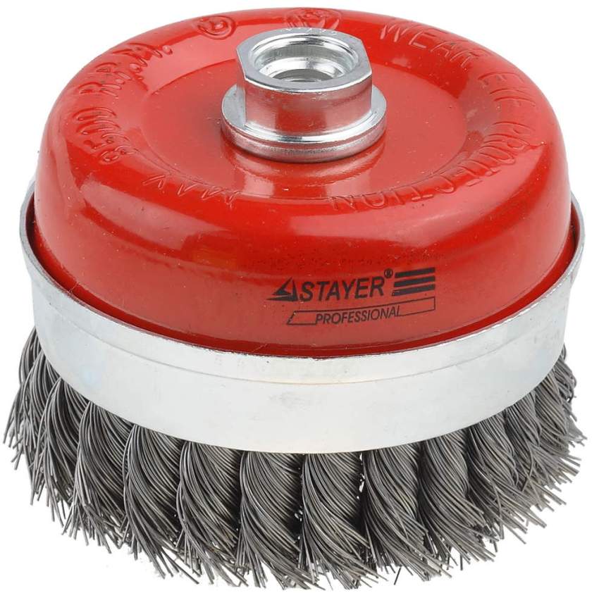Strippen. Diese Scheibe enthält einen Metalldraht, mit dessen Hilfe Farbe, Lack und schwerer Schmutz von der behandelten Oberfläche entfernt werden. Der Durchmesser eines solchen Drahtes wird abhängig von der Art der Arbeit gewählt.