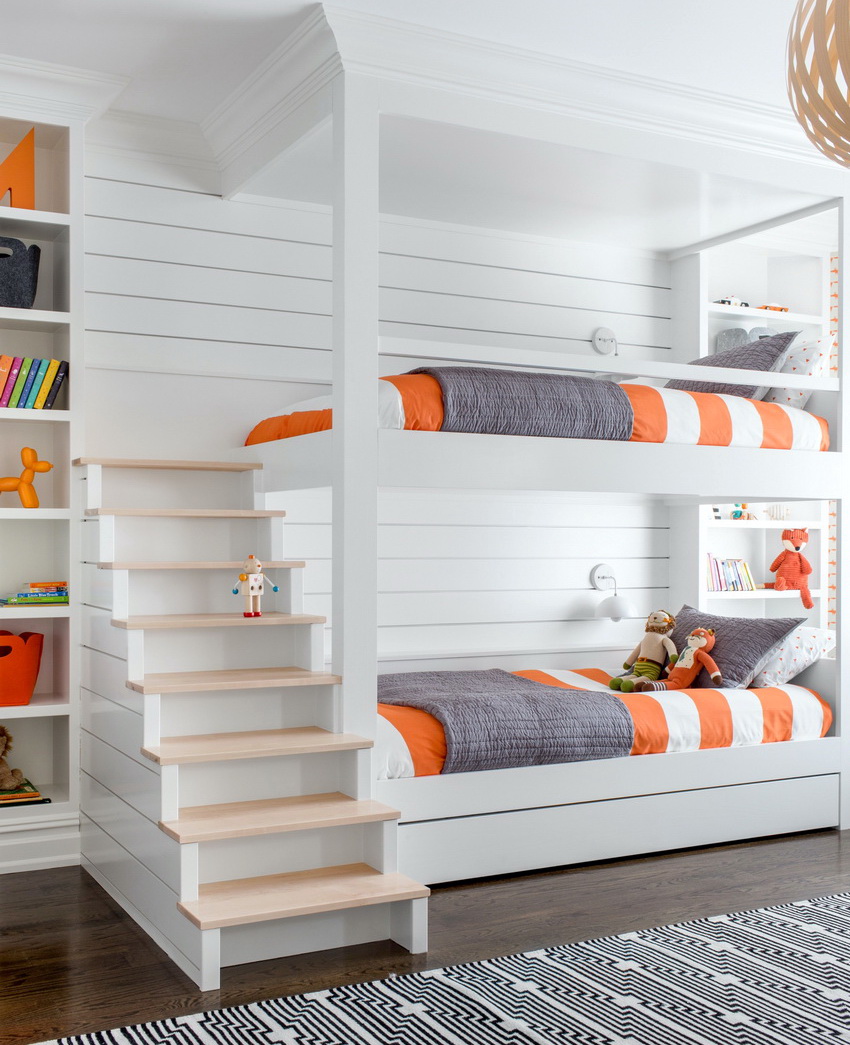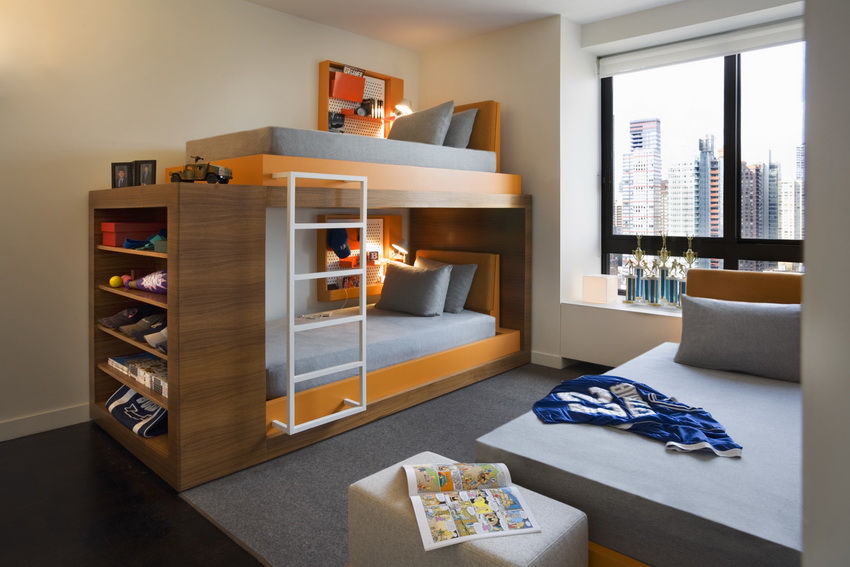 Hilfreicher Rat! Für drei Jungen ist die bequemste und kompakteste Lösung ein einziehbares Design mit drei Ebenen.
