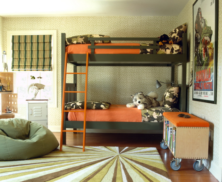 Optionen für Betten im Innenraum des Zimmers, je nach Alter des Jungen