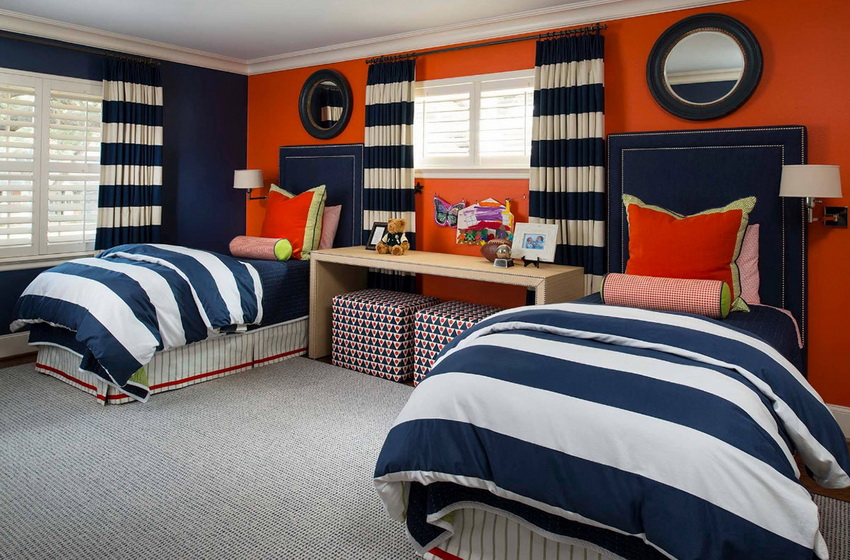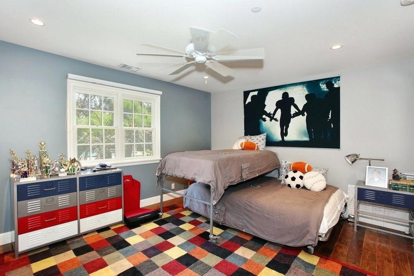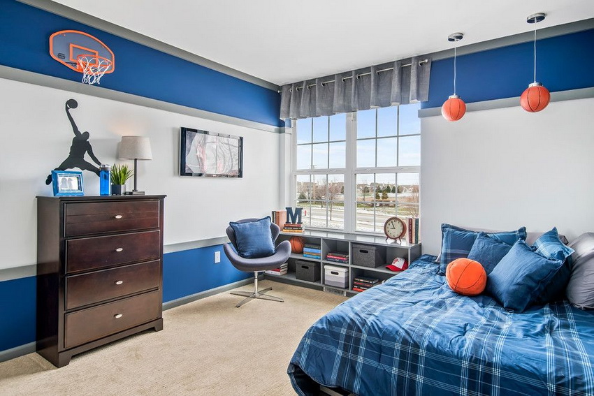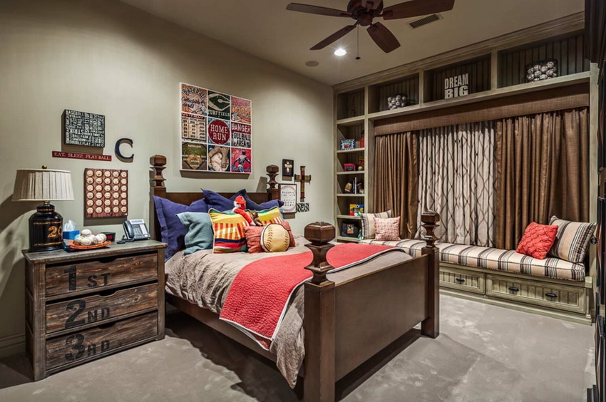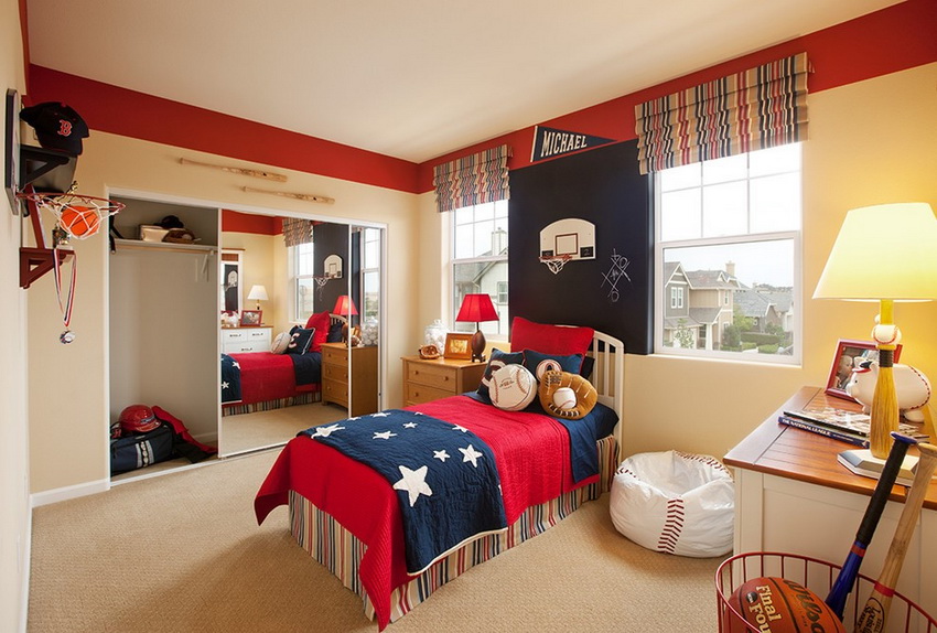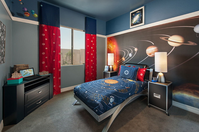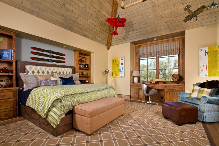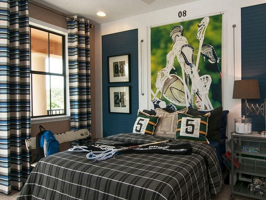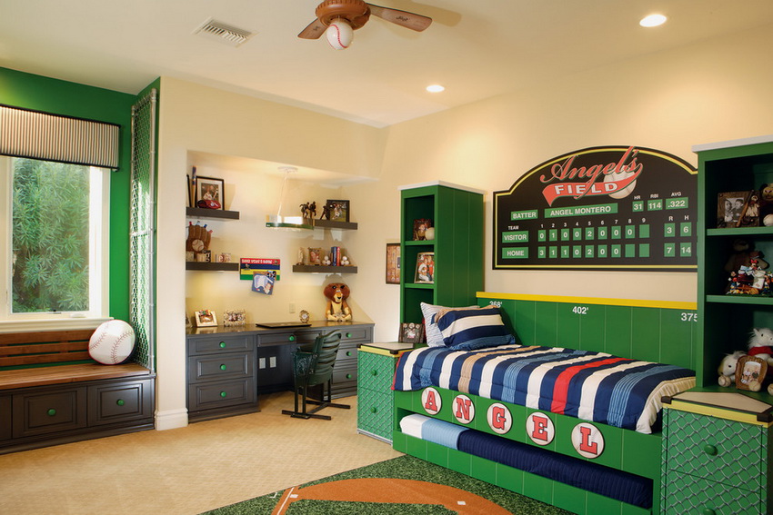 Ein eher umstrittenes Alter beträgt 10-12 Jahre. Ein Junge aus der Kindheit beginnt sich in eine bewusstere Lebensphase zu begeben. Zu diesem Zeitpunkt hatte das Kind einen Charakter gebildet, es erschienen ständige Hobbys und Interessen, die bei der Gestaltung eines Raumes berücksichtigt werden sollten. Die ideale Option ist ein klassisches Einzelbett, das durch charakteristische dekorative Elemente ergänzt wird. Das Modell sollte in einer zurückhaltenden Farbpalette und ohne helle Akzente hergestellt werden.