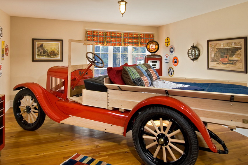 Kinderautobetten für Jungen haben ein originelles Design, das durch zahlreiche Fotos beliebter Modelle deutlich wird. Das detaillierte Design bringt Möbel dem ursprünglichen Aussehen eines echten Autos näher. Zum Dekorieren eines Bettes wird am häufigsten Kunststoff verwendet, der in Schwarz, Rot, Blau oder Grün gestrichen ist. Die Designs sind mit leuchtenden Scheinwerfern und versteckten Aufbewahrungssystemen für verschiedene Dinge ausgestattet, die sich im Kofferraum oder unter der Motorhaube befinden.