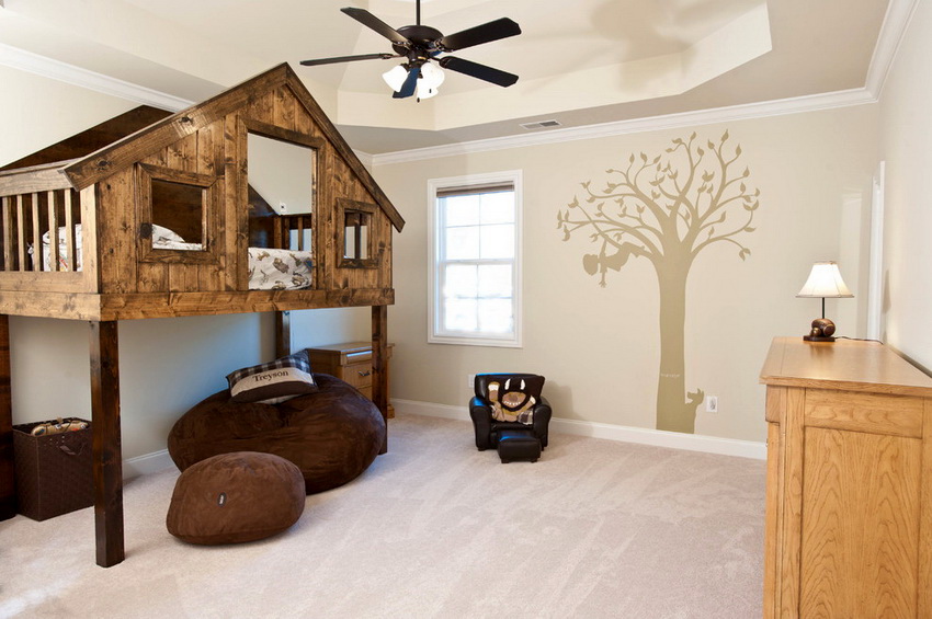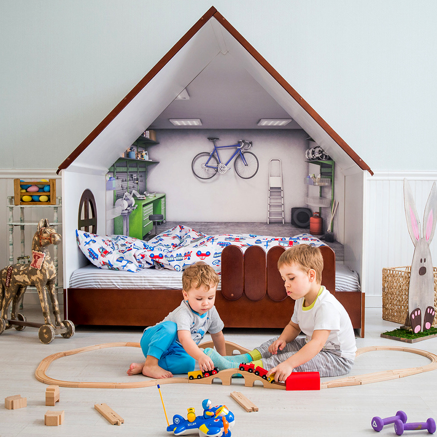 Ein Bett für einen Jungen kann in Form eines Hauses, einer Hütte oder eines Schlosses gemacht werden