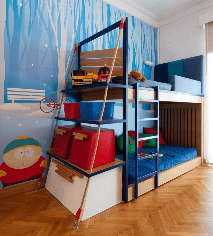 Es gibt viele Modelle von Babybetten für Jungen, die ein ungewöhnliches Design haben und sie zum zentralen Element des Raumes machen.
