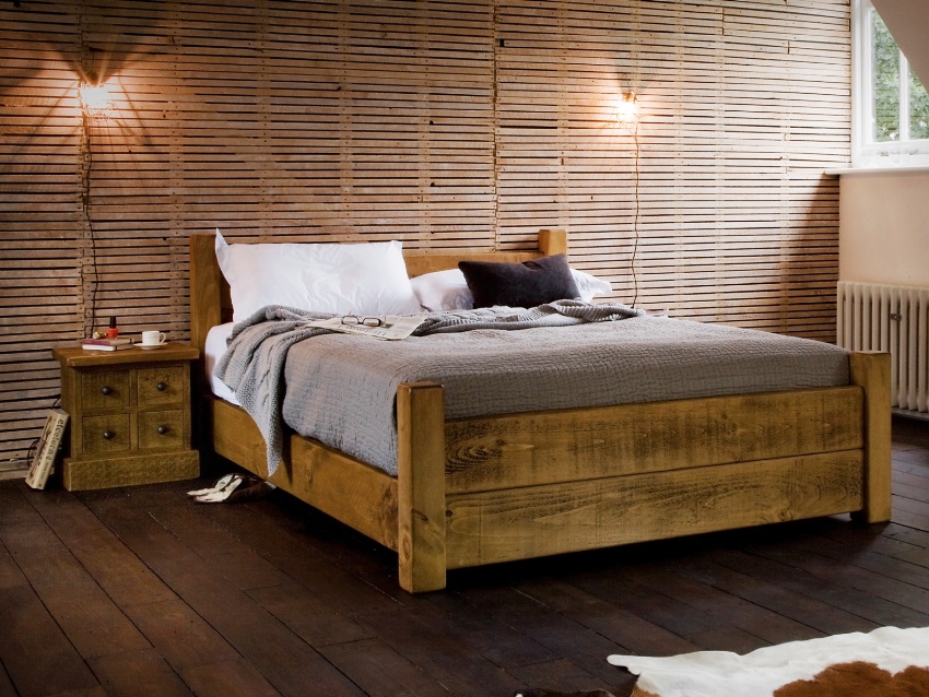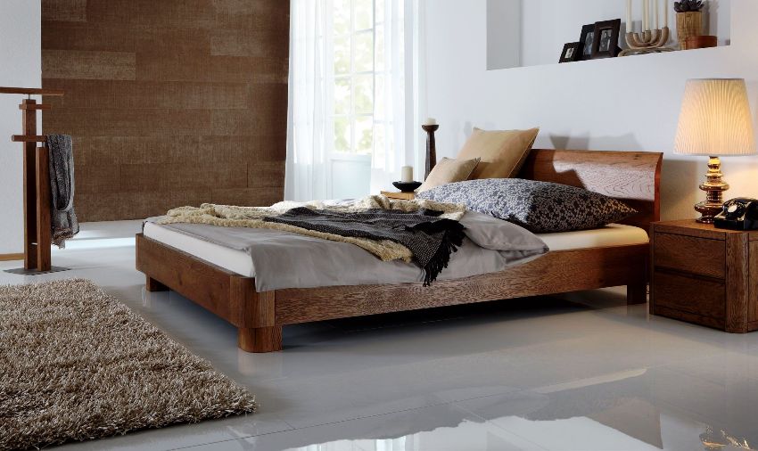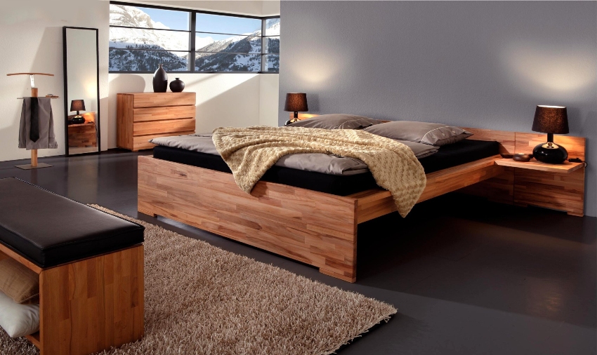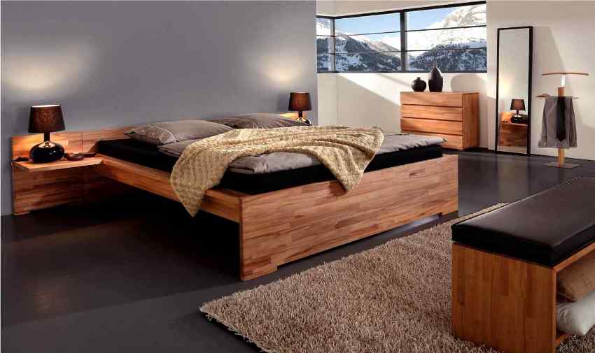 Wichtig! Eines der Hauptkriterien bei der Auswahl von Möbeln für ein Schlafzimmer aus Holz ist ein massiver Rahmen, der als Grundlage für jedes Bett dient.