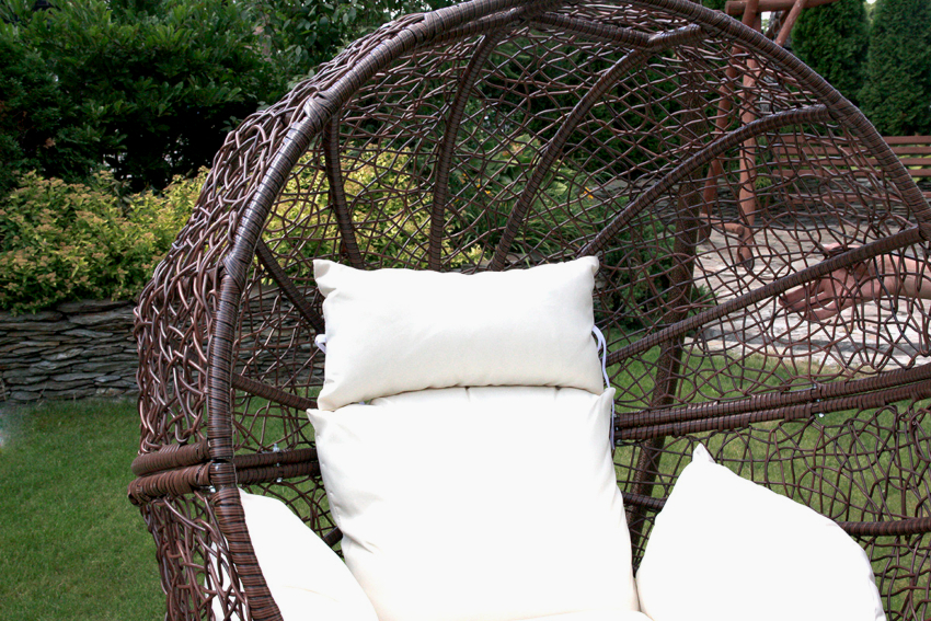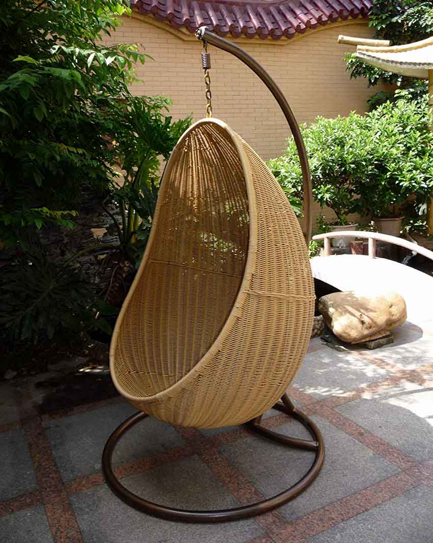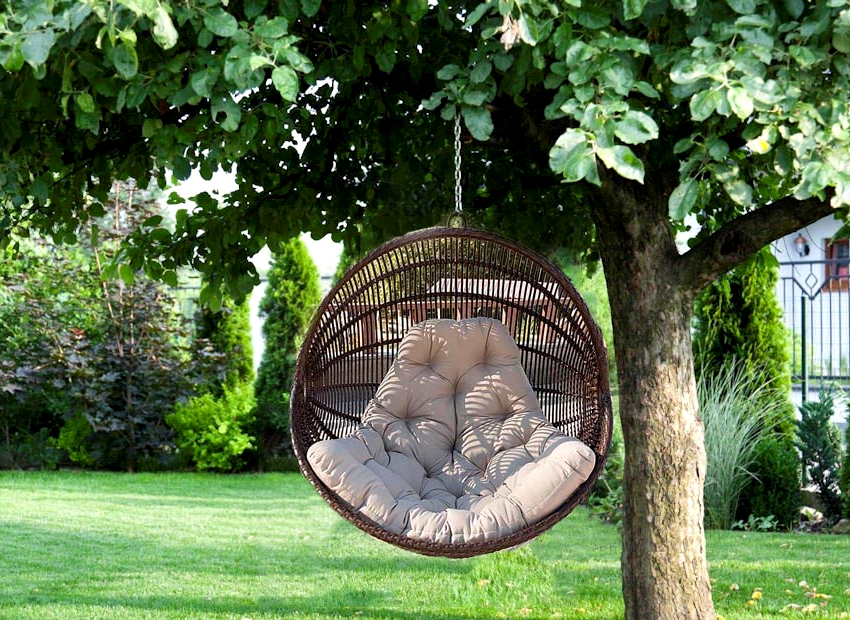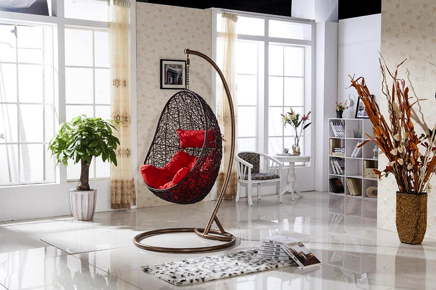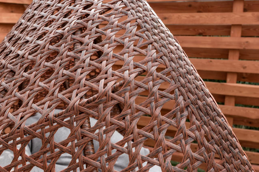 Ein beliebtes Material für die Herstellung von Hängesesseln ist künstliches Rattan, es hat keine Angst vor hoher Luftfeuchtigkeit und Sonnenlicht.