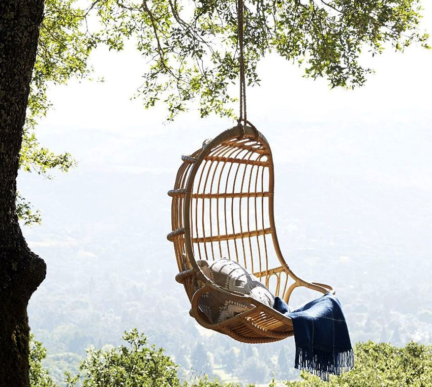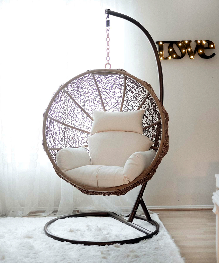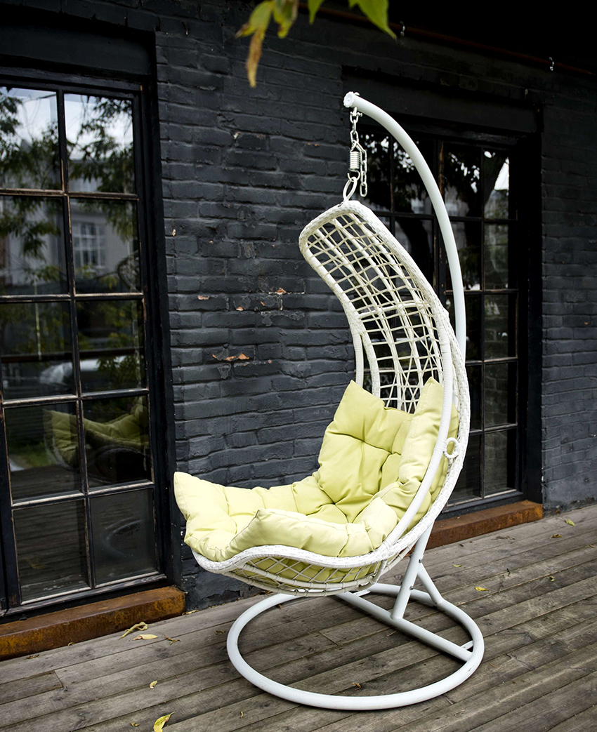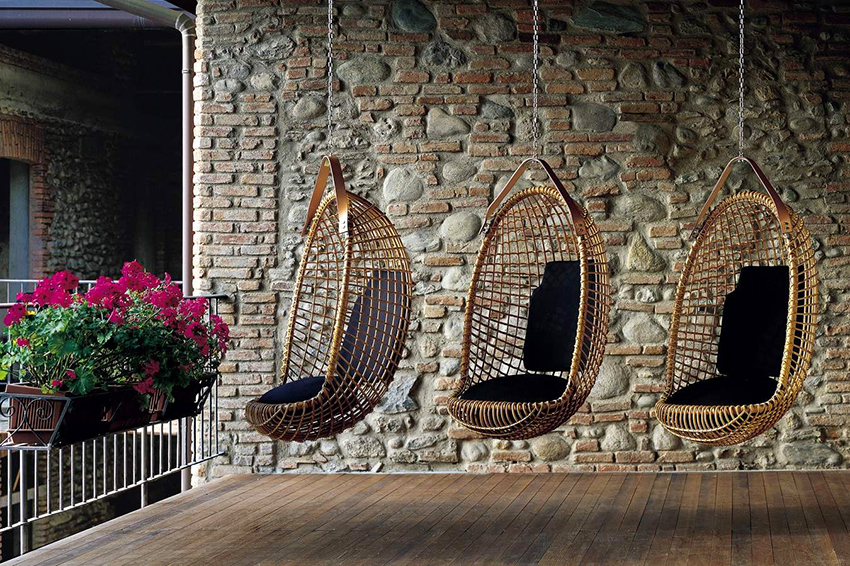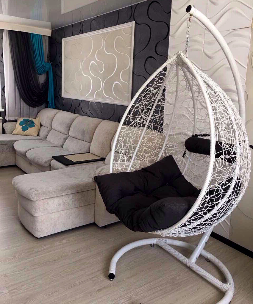 Ein beliebtes Material für die Herstellung von Hängesesseln ist künstliches Rattan, es hat keine Angst vor hoher Luftfeuchtigkeit und Sonnenlicht.