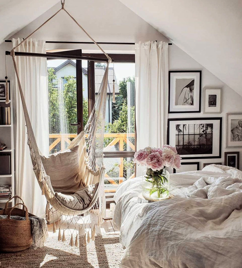 Die Hauptoptionen zum Aufhängen von Stühlen: Kokon, Hängematte, Nest