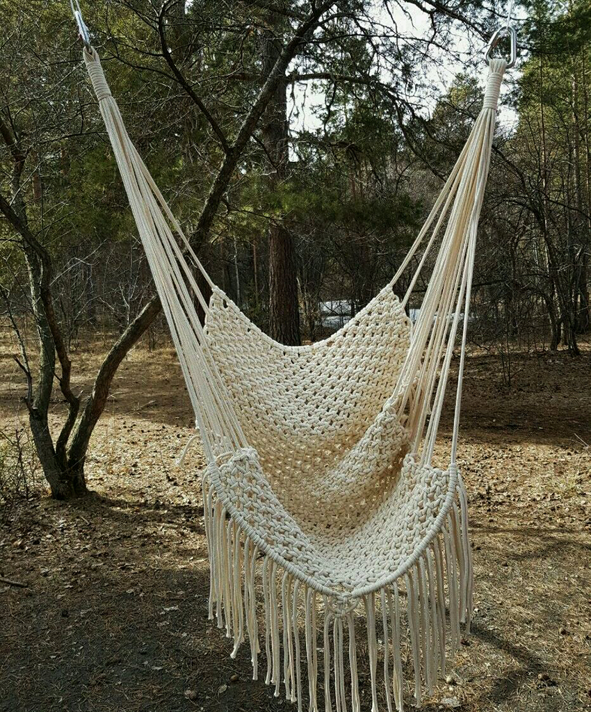 Unkomplizierter Herstellungsprozess. Es ist nicht so schwierig, einen hängenden Eierstuhl oder ein anderes Modell mit eigenen Händen herzustellen, wie es auf den ersten Blick erscheinen mag. Eine große Anzahl detaillierter Meisterklassen und schrittweiser Anleitungen finden Sie online. Die Hauptsache ist, den Wunsch und genug Freizeit zu haben.