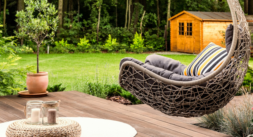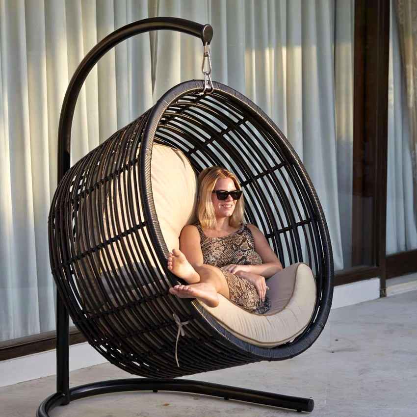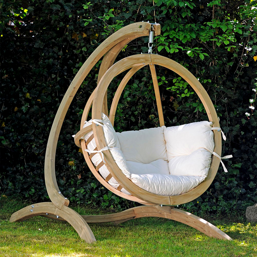 Welche Materialien werden für das Gestell von Hängesesseln verwendet: Fotobeispiele